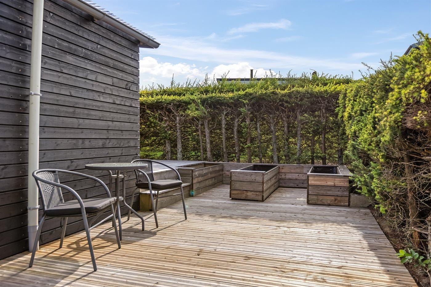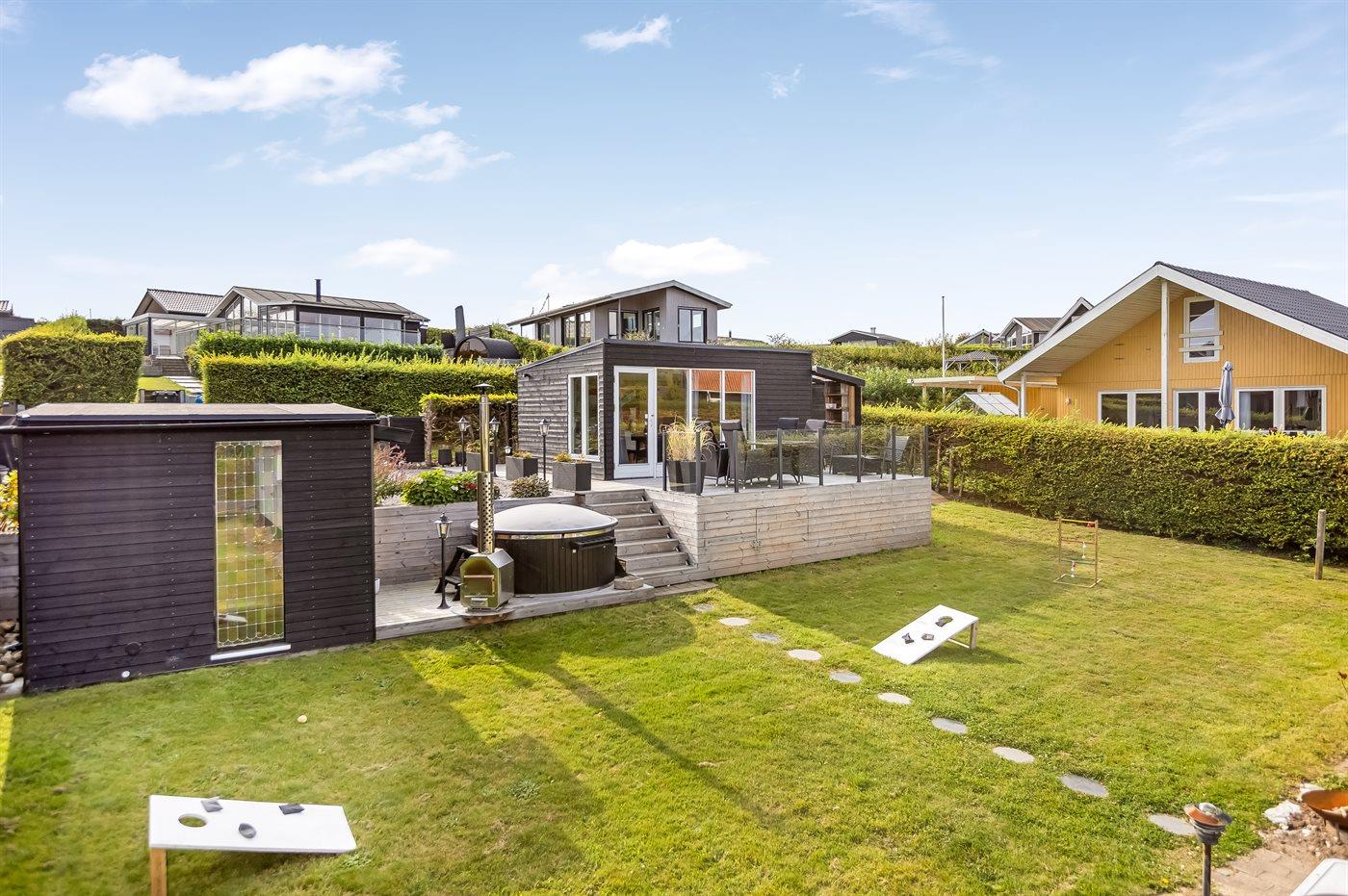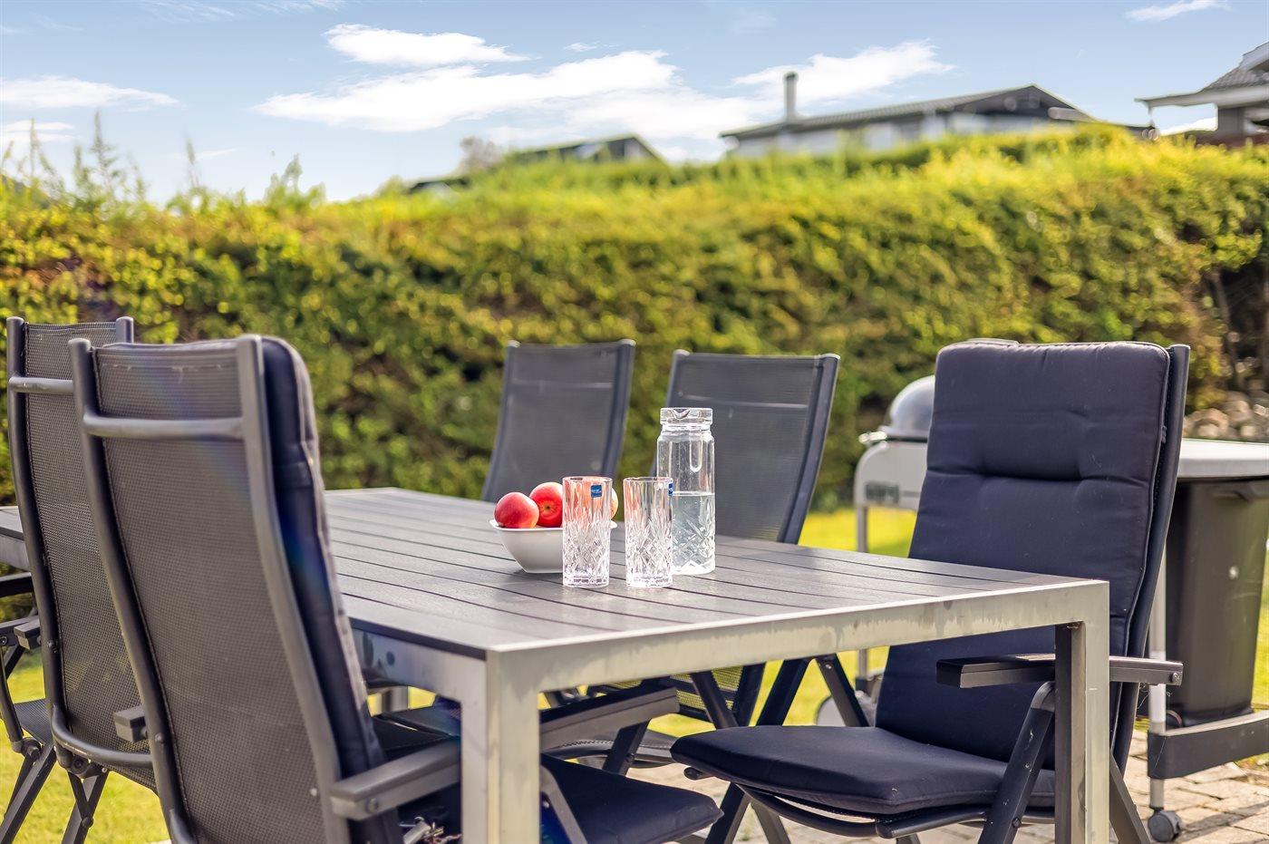 Udelivet er noget helt særligt ved dette sommerhus. Annekset, vildmarksbadet og den flotte udesauna er placeret på grundens højeste punkt med udsigt til vandet. Hele wellnessområdet er omgivet af en skøn terrasse, der indbyder til hygge og samvær. Her kan I nyde en aften i det varme vildmarksbad under stjernehimlen eller slappe af i saunaen med panoramaudsigt.