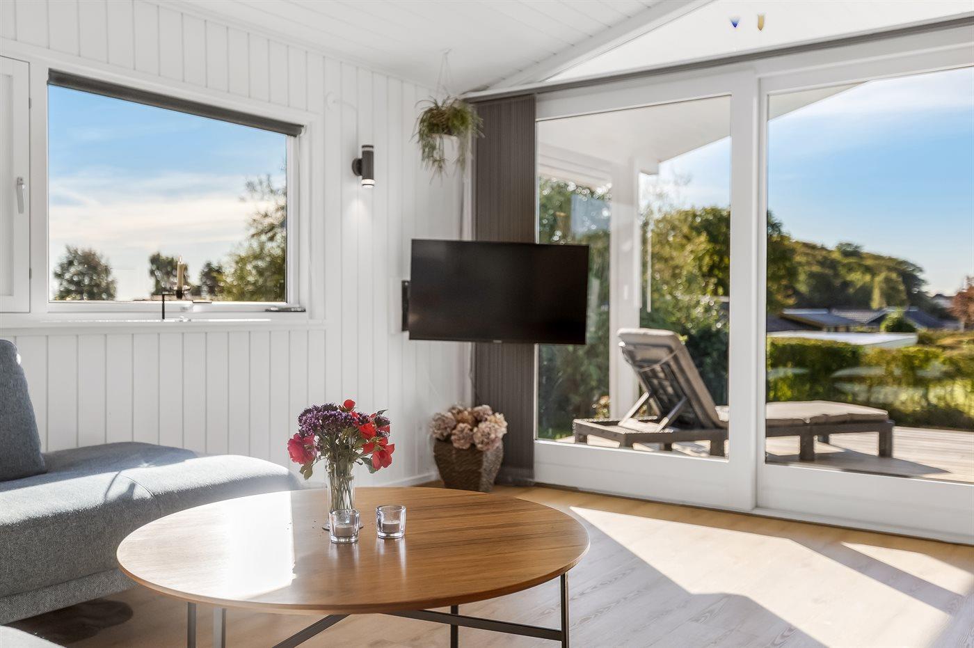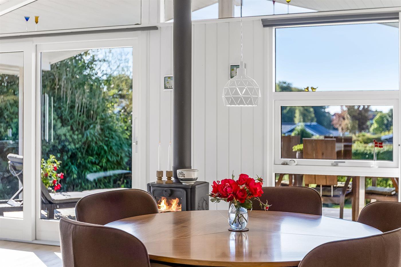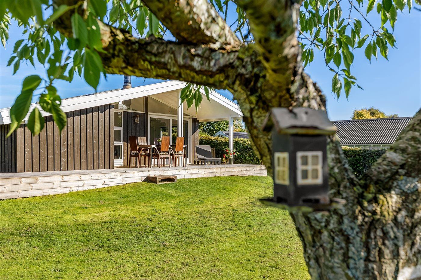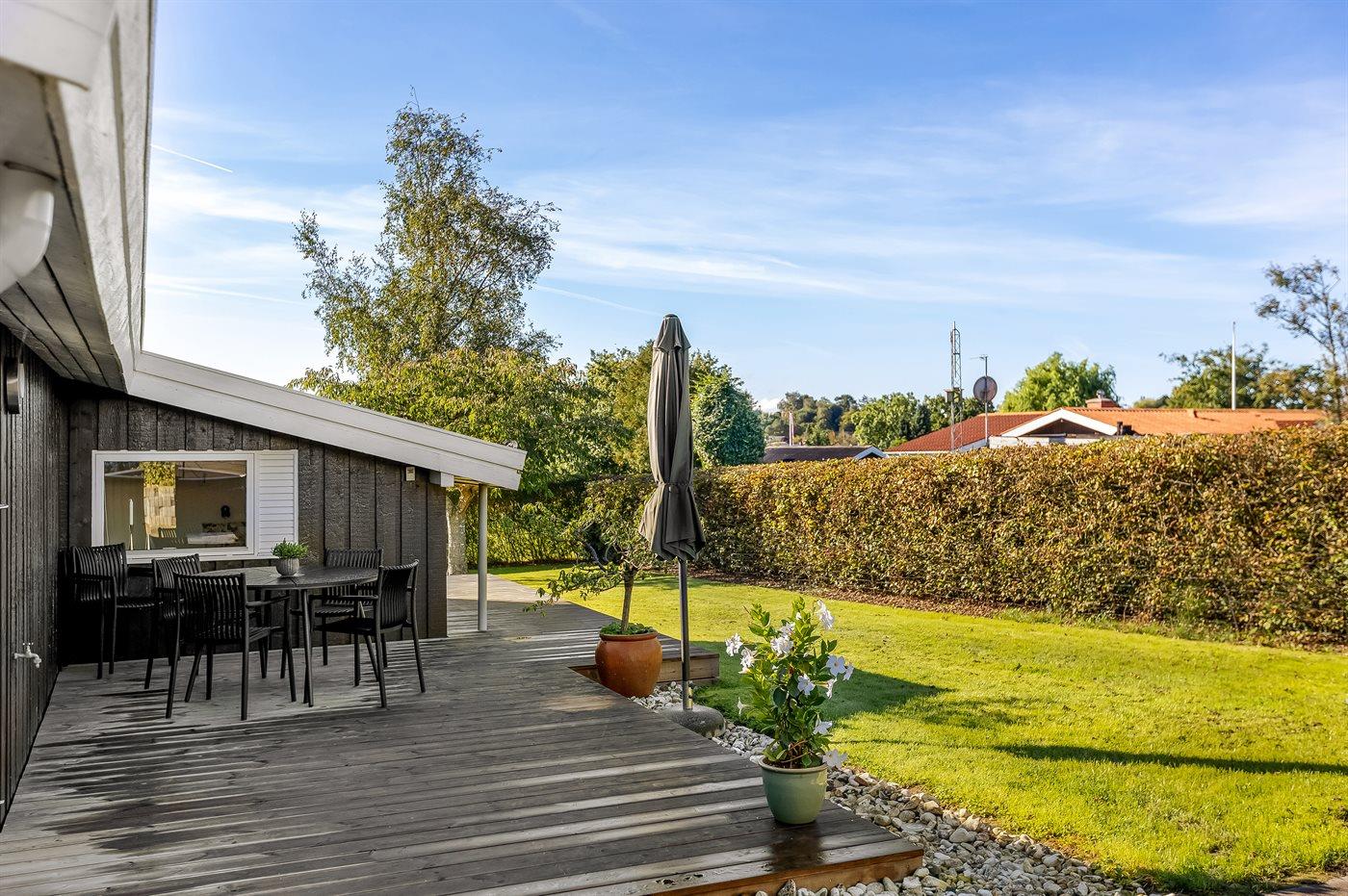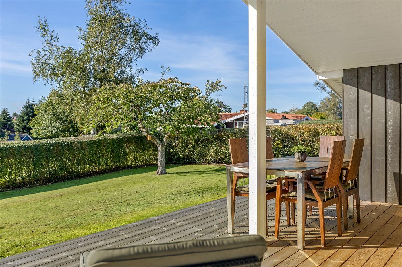 Den nye, store træterrasse, der blev etableret i 2024, omkranser en stor del af huset og giver rig mulighed for at nyde solen hele dagen igennem, hvad enten du ønsker at sidde under åben himmel eller at trække dig tilbage under den overdækkede del. Her kan du starte dagen med morgenkaffen i solen og afslutte aftenen med grillhygge og gode samtaler.
