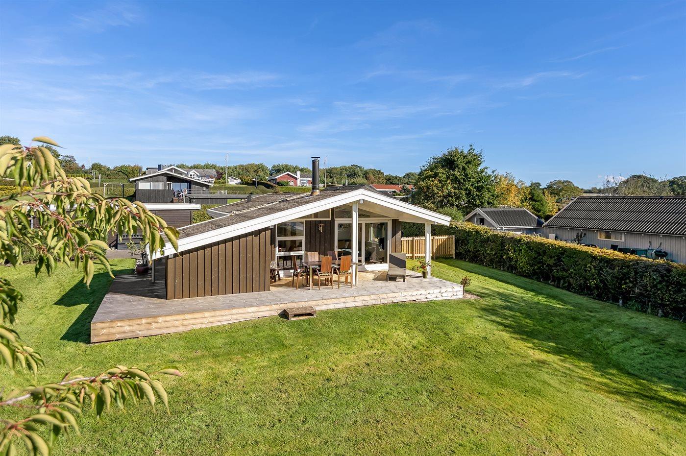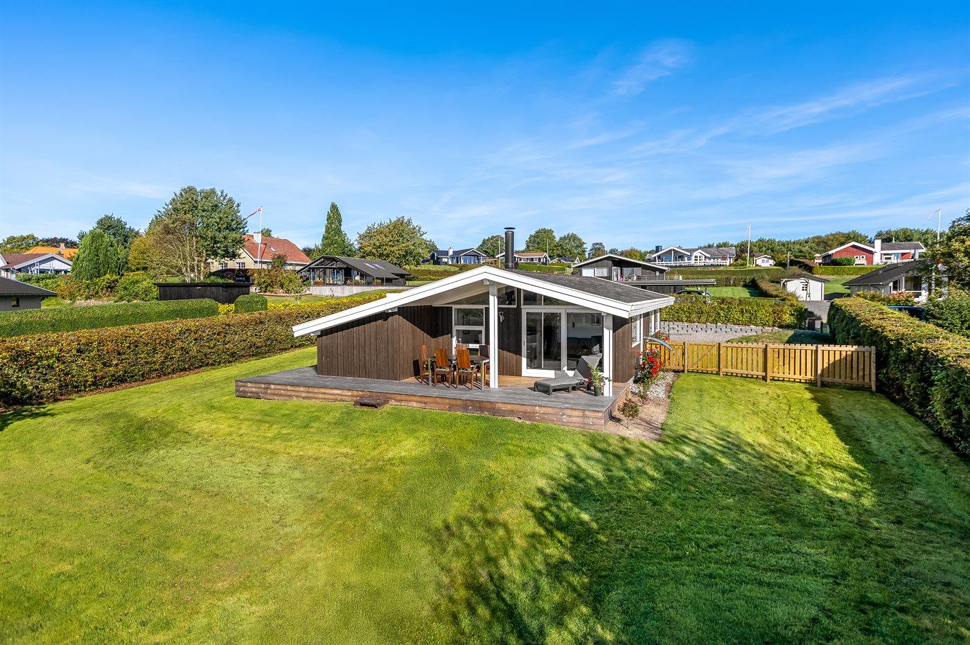 Hyggeligt sommerhus i Hejlsminde med stor terrasse, indhegnet have og tæt på børnevenlig strand.