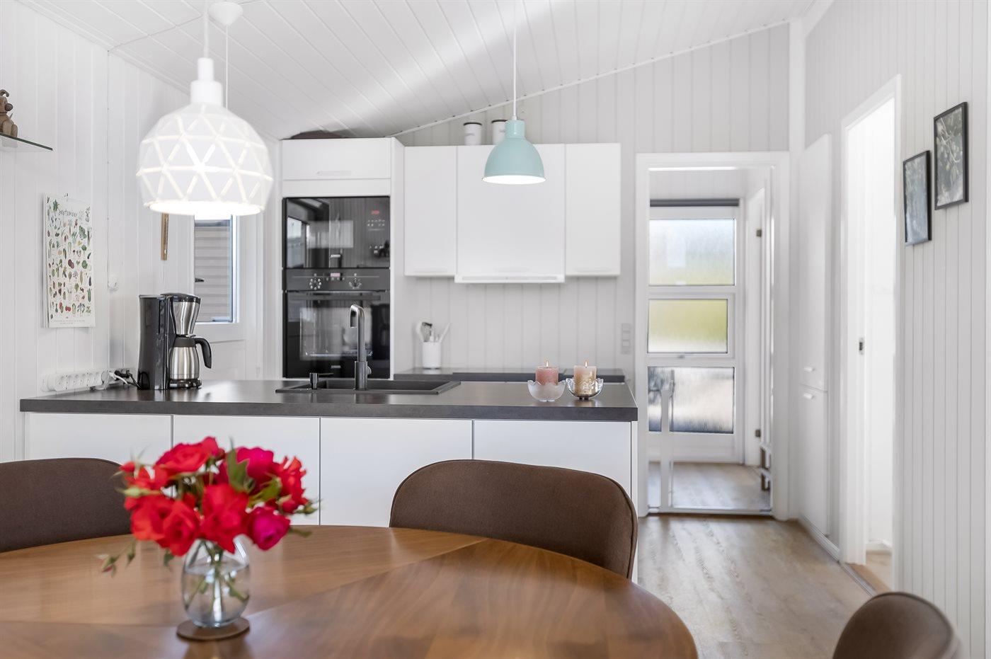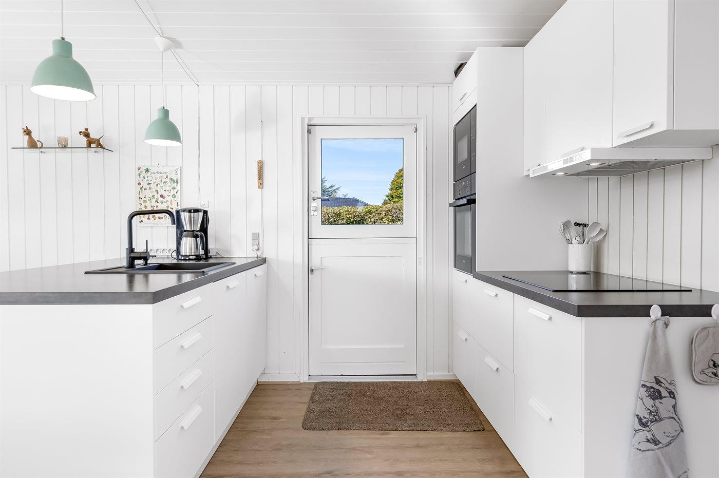 Køkkenet er udstyret med 1 køleskab. Der er 4 induktionskogeplader, varmluftovn, mikrobølgeovn samt opvaskemaskine.