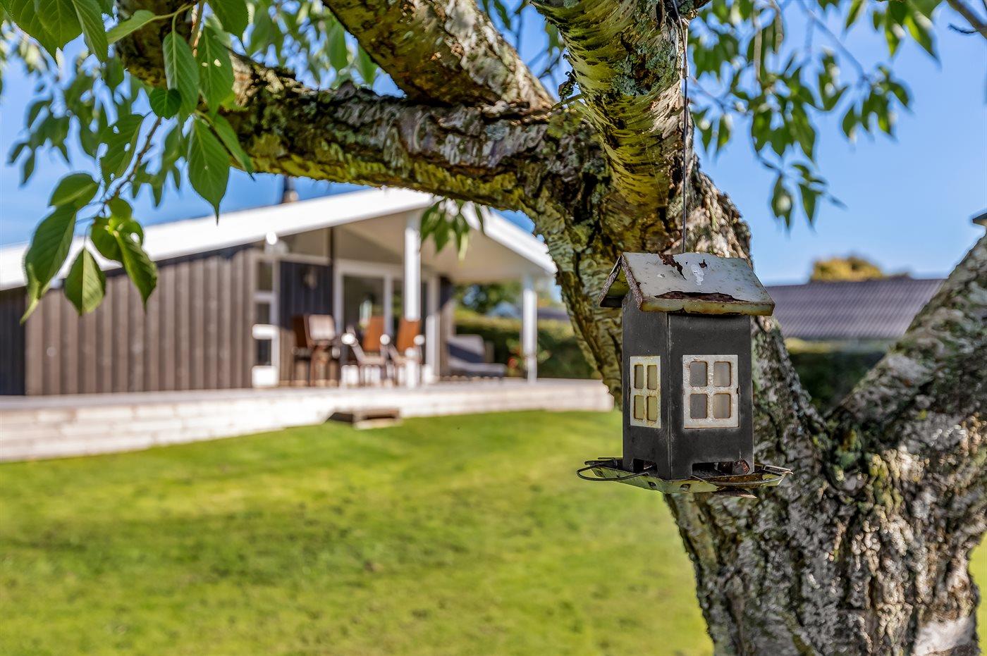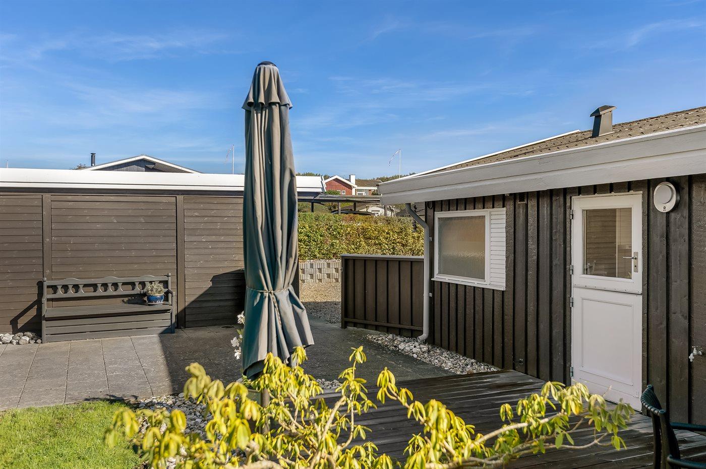 Ferieboligen er beliggende på en 850 m² stor naturgrund. Grunden er indhegnet. Der er 450 m til havet. Nærmeste forretning er beliggende i en afstand af 3400 m. Til ferieboligen hører åbent terrasseareal. Desuden er der overdækket terrasse. Der ligger en legeplads i en afstand af 200 m. Bålsted. Grill til rådighed. Parkering ved ferieboligen.