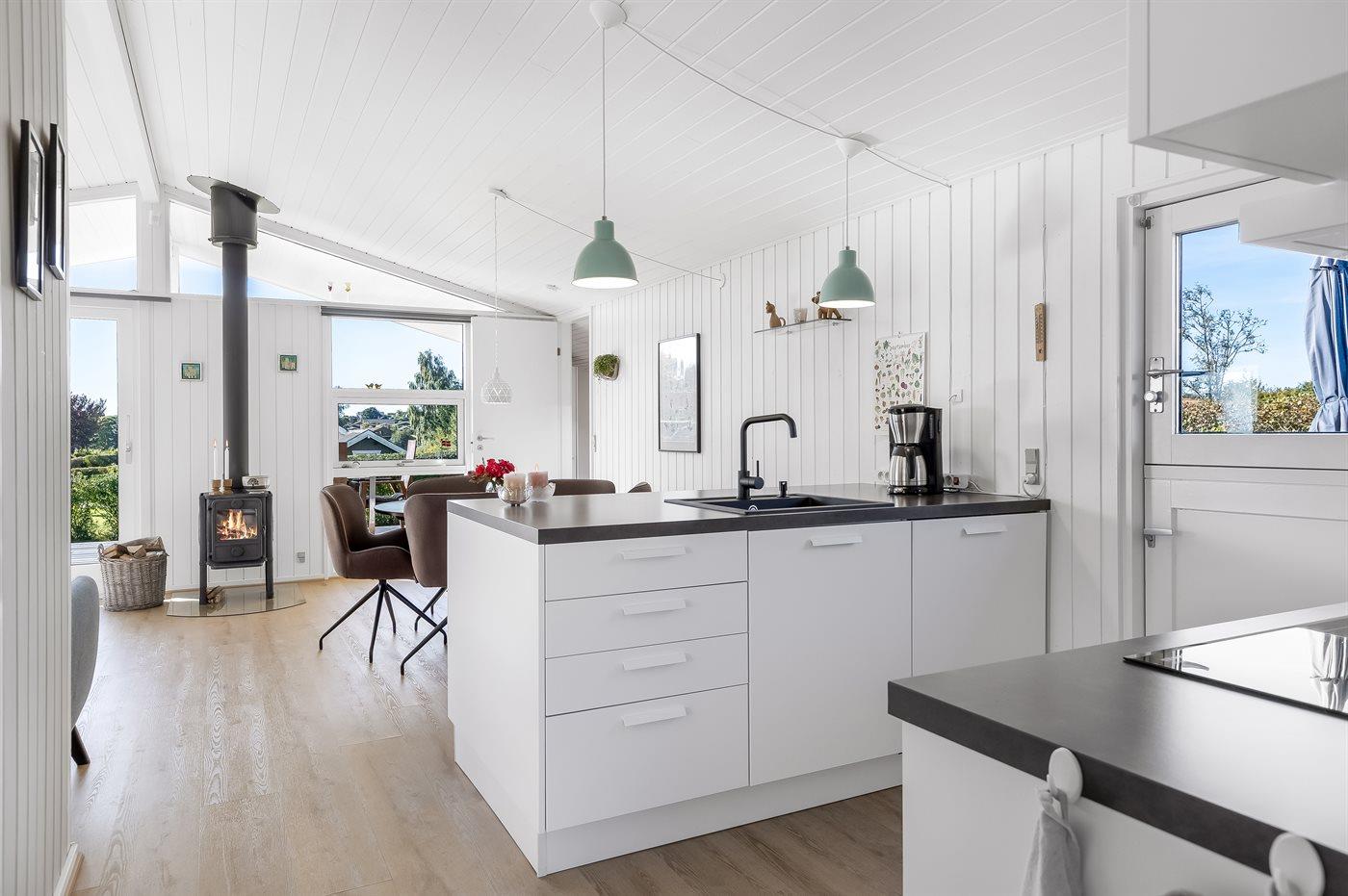I dette sommerhus i Hejlsminde finder du et lyst og indbydende fristed, hvor komfort og hygge går hånd i hånd. Hjertet i huset er det store køkken-alrum, som indbyder til samvær, og hvorfra der via en skydedør er direkte adgang til terrassen, således ude- og inde livet smelter sammen på naturlig vis. Sommerhuset er indrettet med fokus på hygge og nærvær, og udenfor venter en stor have med masser af plads til leg og aktiviteter på den grønne plæne. Haven er indhegnet, så børnene trygt kan løbe frit omkring og nyde den friske luft.
