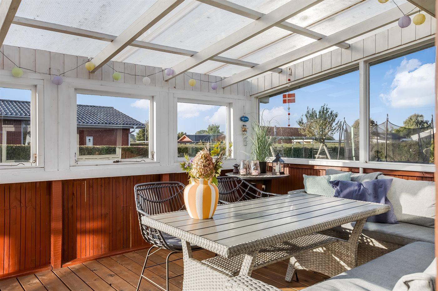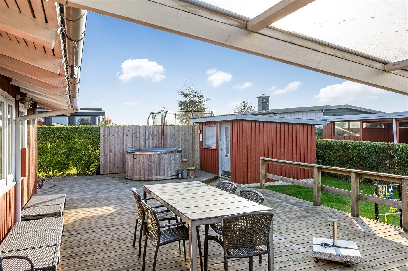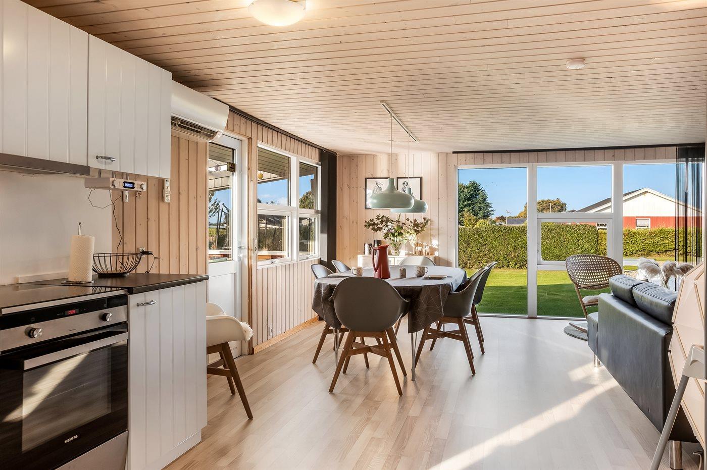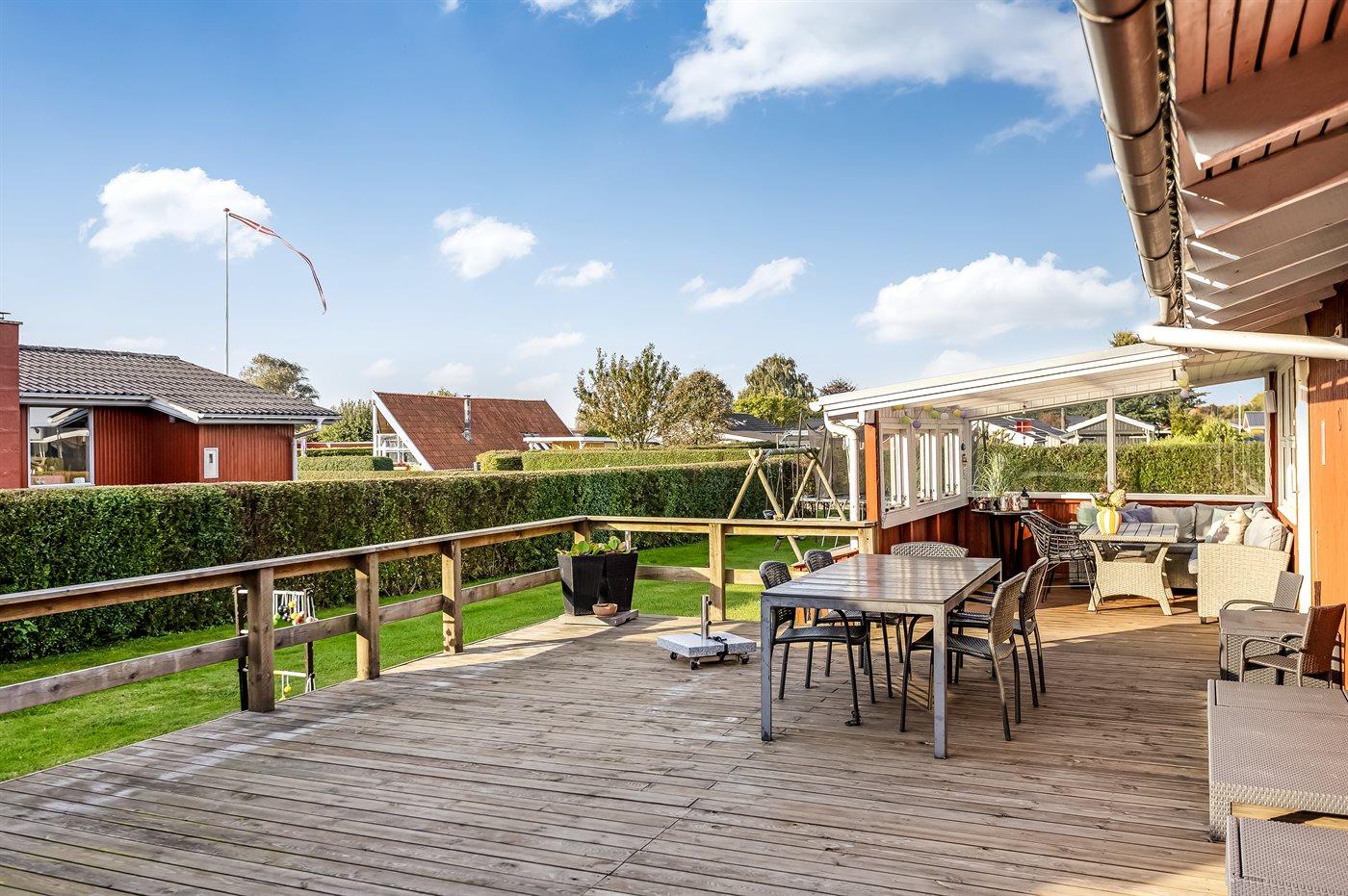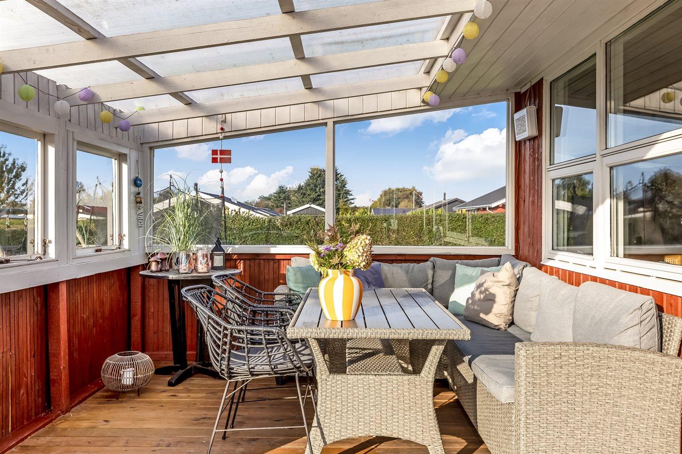 Ferieboligen er beliggende på en 682 m² stor havegrund. Der er 500 m til havet. Nærmeste forretning er beliggende i en afstand af 3400 m. Til ferieboligen hører åbent terrasseareal. Desuden er der overdækket terrasse. Gynge. Sandkasse. Trampolin. Grill til rådighed. Parkering ved ferieboligen.