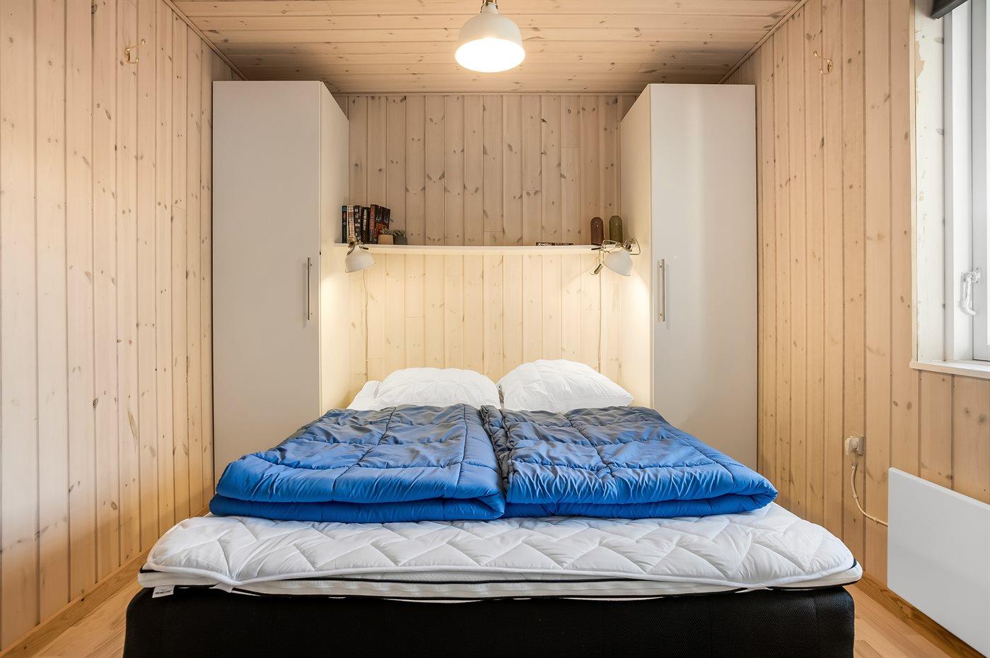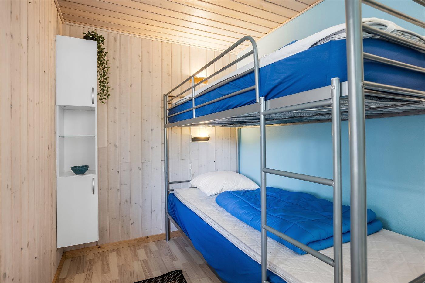 Der er i alt 3 soveværelser. Sovepladserne fordeler sig på: 4 sovepladser i dobbeltsenge. 2 sovepladser i køjeseng. Derudover er der 1 stk. barneseng.