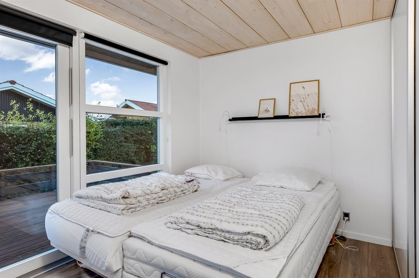 Huset er indrettet med 2 soveværelser samt mulighed for opredning på en sovesofa i opholdsstuen.