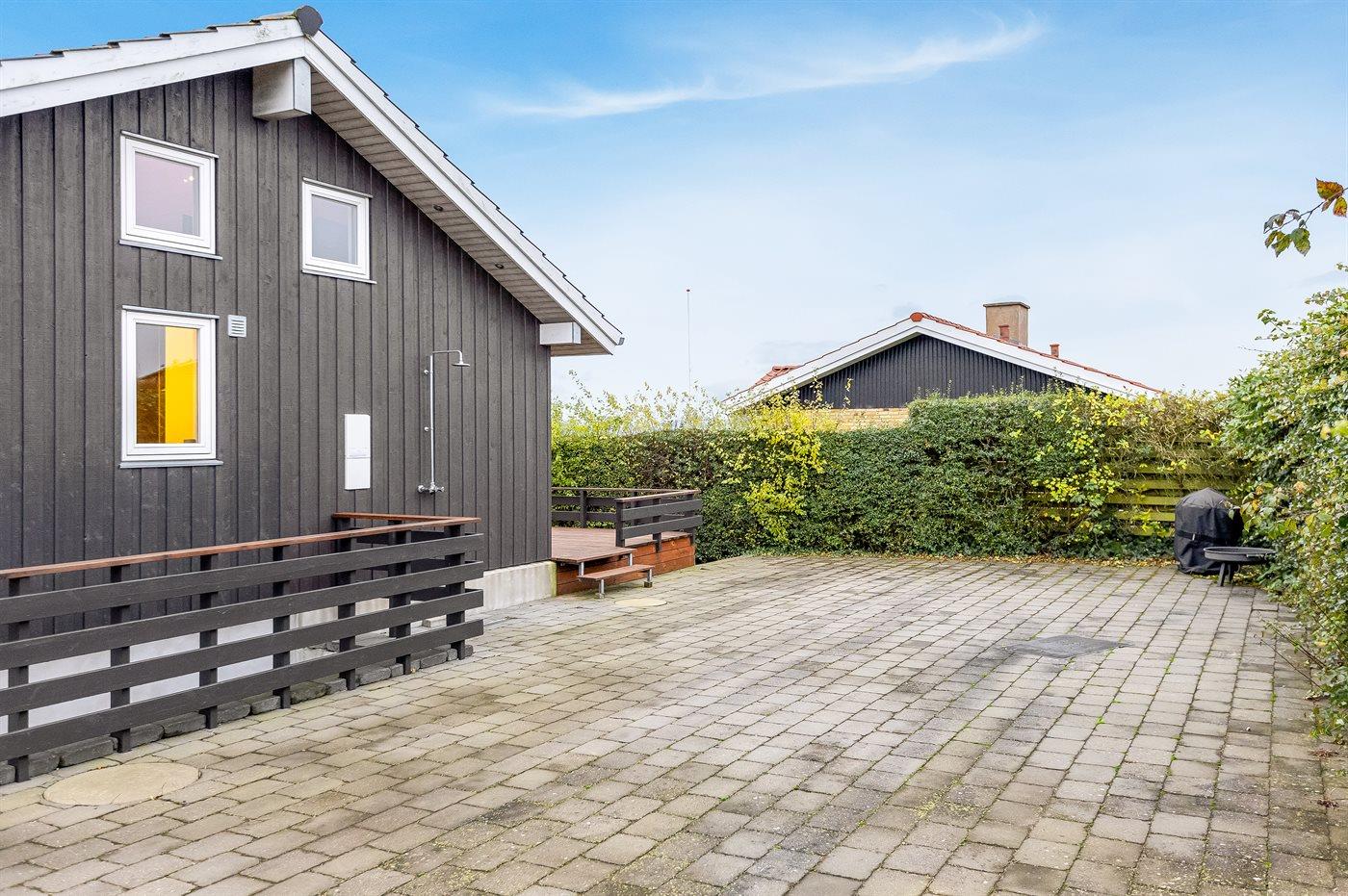Ferieboligen er beliggende på en 354 m² stor naturgrund. Der er 25 m til havet. Der er en badebro i nærheden. Nærmeste forretning er beliggende i en afstand af 3300 m. Til ferieboligen hører åbent terrasseareal. Der ligger en legeplads i en afstand af 250 m. Bålsted. Udendørs bruser. Grill til rådighed. Parkering ved ferieboligen.