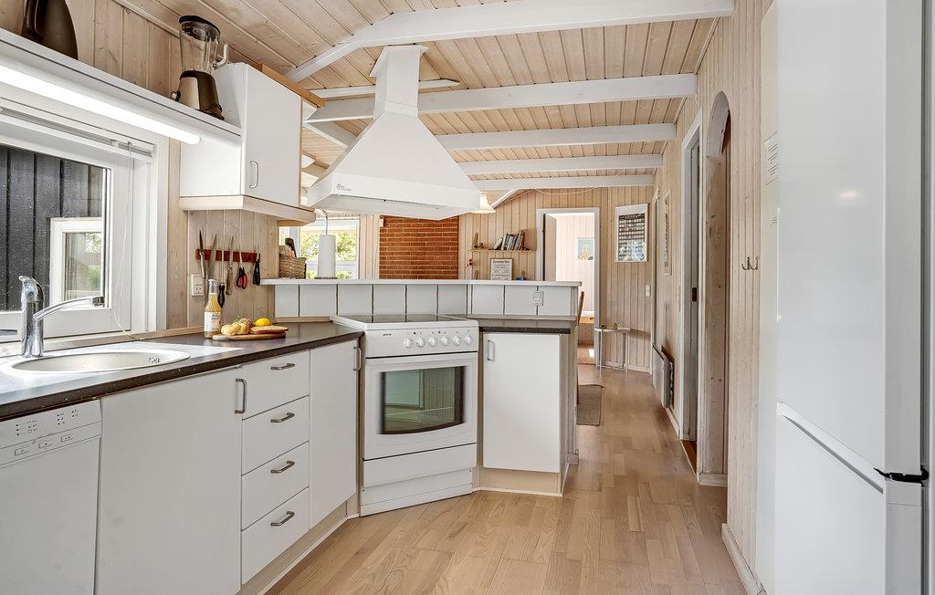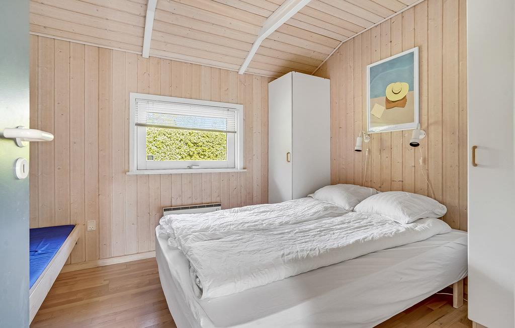 Dette lyse og komfortable feriehus ligger i et roligt feriehusområde og er omgivet af en velholdt og beskyttet have. Her kan I planlægge jeres aktiviteter over hyggelige måltider, afholde sjove spilleaftener eller slappe af med en film i den behagelige sofagruppe efter en lang dag i den friske havluft. Forkæl jer selv med afslappende øjeblikke i spabadet eller saunaen og glæd jer til hyggelige læsetimer foran brændeovnen.