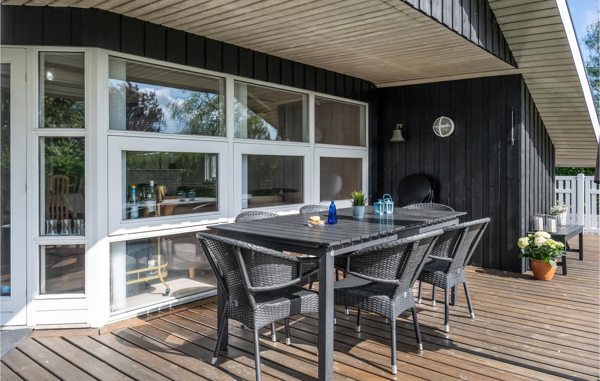 På terrassen kan I nyde solen i liggestolene og holde øje med børnene, mens de nyder de spændende legemuligheder. Tænd op i grillen og server aftensmad under åben himmel på klare dage.