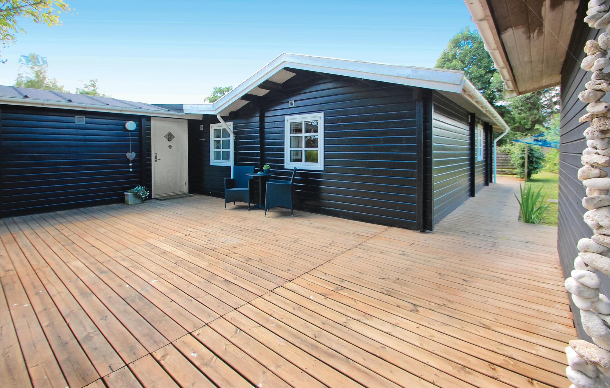 Hyggeligt træhus med moderne møbler, sauna, spabad og tæt på vand samt aktiviteter for hele familien.