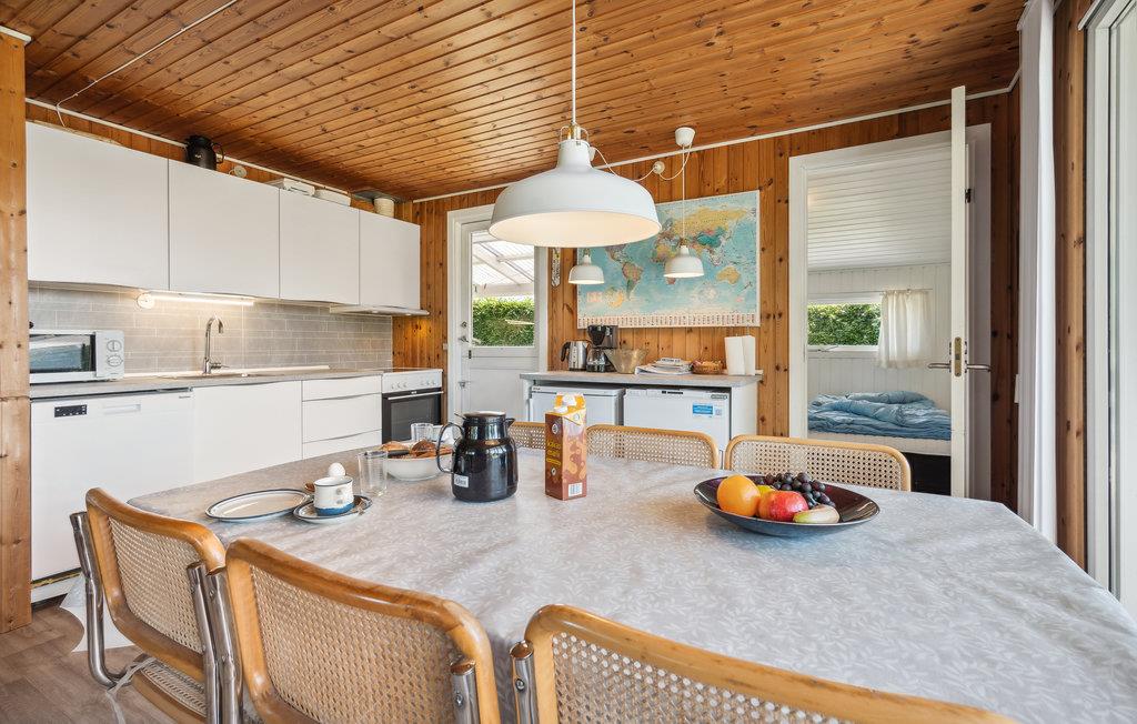 Dette hus byder på en hyggelig og autentisk sommerhusstemning både ude og inde. Det er indrettet med et åbent køkken/alrum med gode praktiske møbler, brændeovn (gratis brænde) og et fint lille veludstyret køkken, tre soverum samt et badeværelse. Til huset hører en dejlig terrasse til ren afslapning samt en velanlagt have med plads til leg på både plænen og legeredskaberne. Huset er centralt beliggende i et stort, men roligt, feriehusområde med mange stier til hyggelige gåture ligesom der ligger en legeplads og boldbane meget tæt på. Legoland, Givskud Zoo, Slotssøbadet samt pragtfulde skove ved det historiske Skamlingsbanken ligger mindre end en times kørsel derfra.
