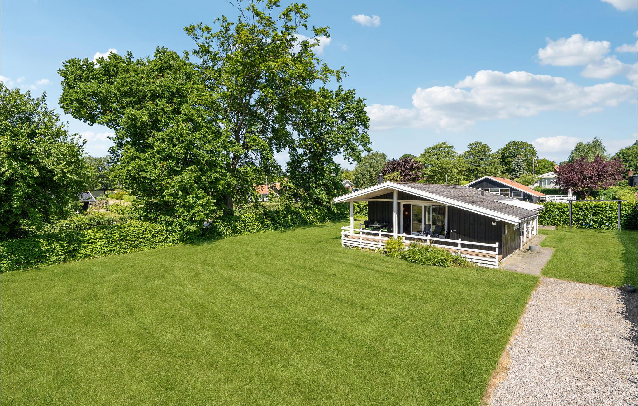 Hyggeligt fritidshus i Hejlsminde med brændeovn, terrasse og stor have tæt på natur og familieoplevelser.