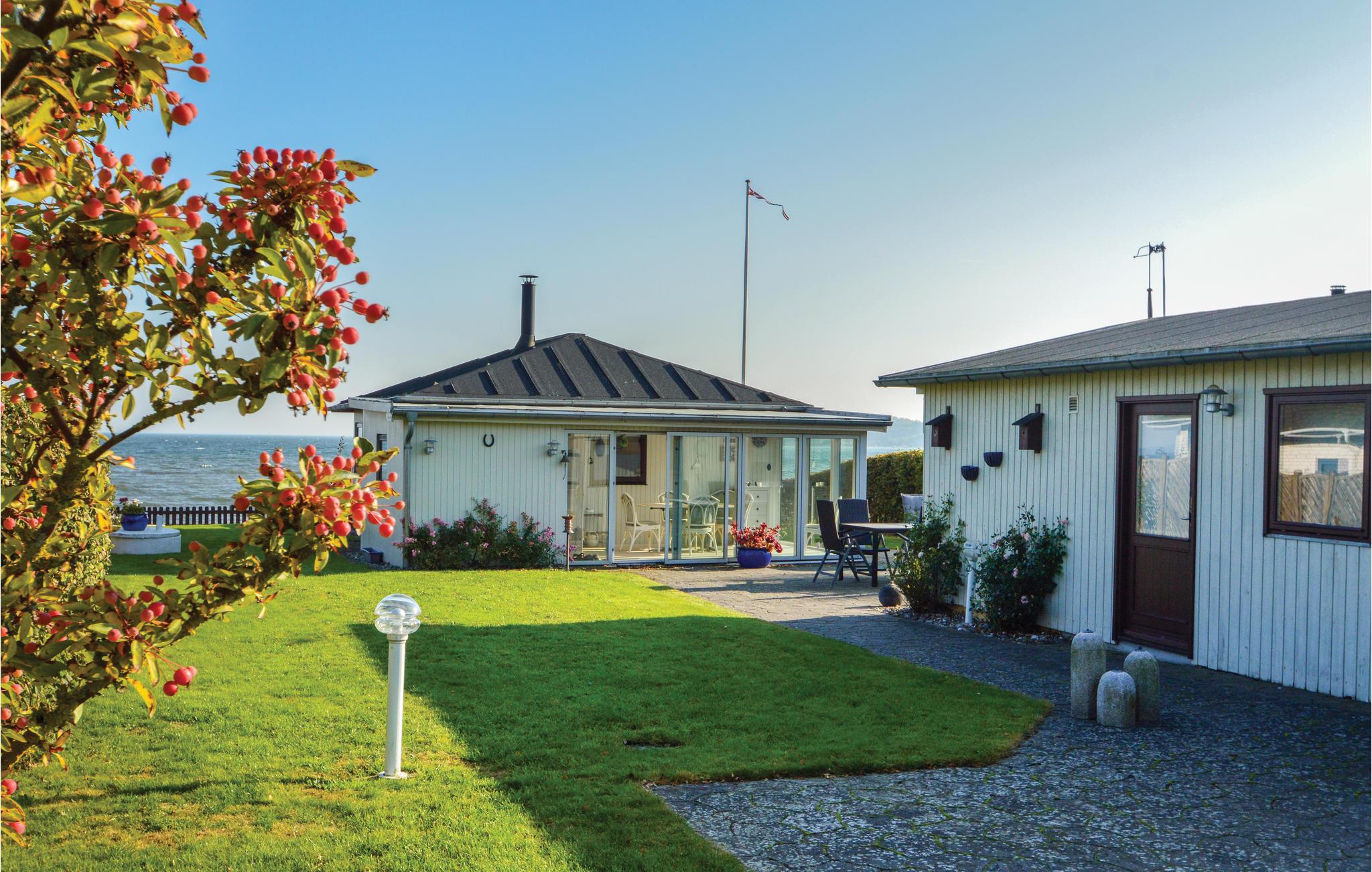 Skøn panoramaudsigt fra feriehuset og terrassen, i første række til vandet. På en blind vej i rolige omgivelser i Hejlsmindes feriehusområde ligger dette hyggelige feriehus. Huset ligger på en stor afskærmet grund med direkte adgang til stranden, ikke langt væk fra strandpromenaden i Hejlsminde. Huset består af et hovedhus med adgang til terrassen fra stuen, i huset er der et soveværelse. I det tilhørende anneks er der yderligere to soveværelser med hver to sovepladser, dog med lavt til loftet. Badeværelset kommer I til via udestuen, som er dejlig lys, her er der også udgang til den store lukkede have. Her kan I opholde jer tæt på vandet og alligevel ugenert på en grund, hvor der er plads til at boltre sig.