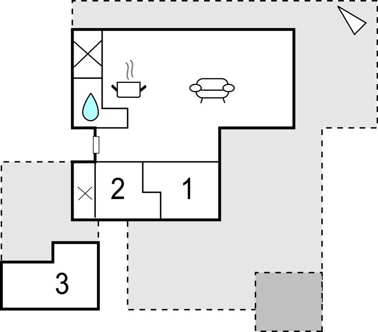Der er to soverum i hovedhuset, samt et badeværelse med brus. I annekset et der yderligere et ugenert soverum.