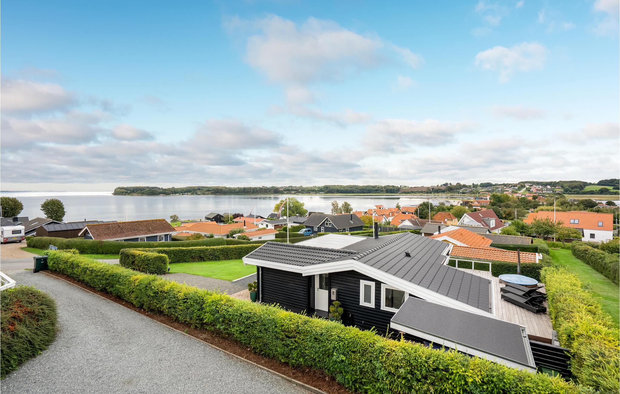 Toplækkert feriehus i Hejlsminde med stor terrasse, vildmarksbad og panoramaudsigt over Lillebælt.