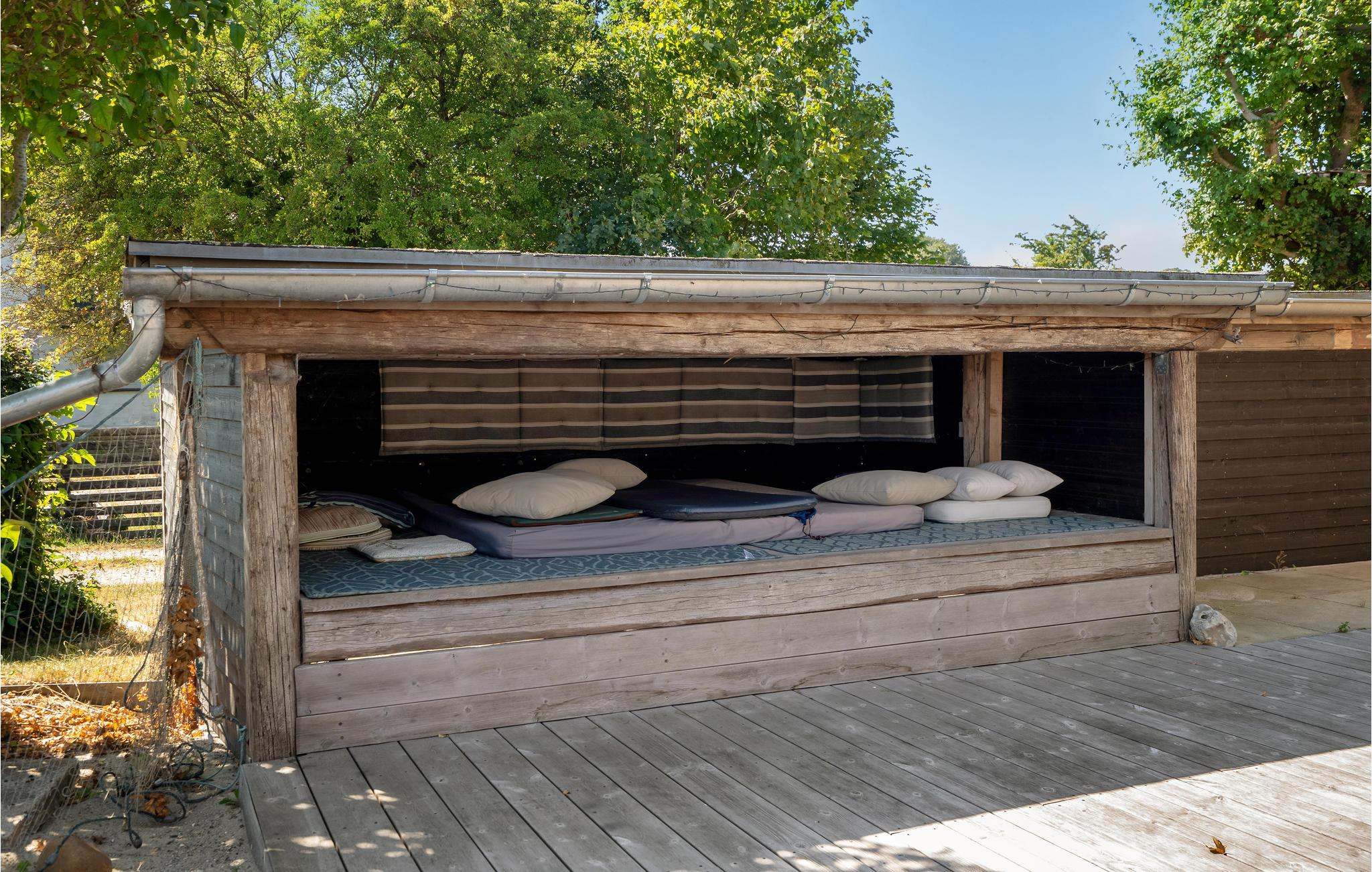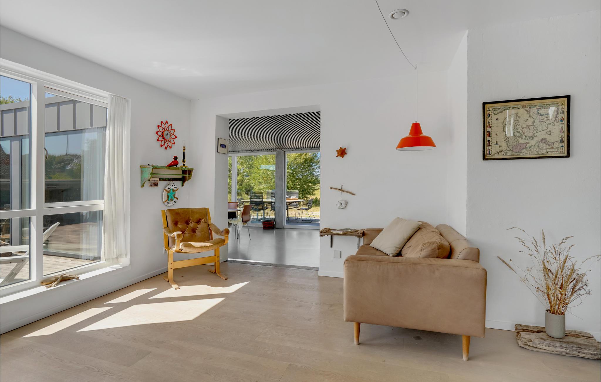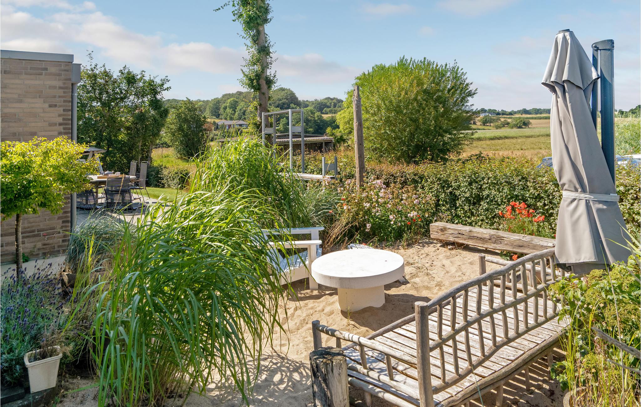 Til huset hører en stor terrasse og have med adskillige møbler til solbadning og udendørsspisning. Børnene vil elske at løbe rundt og lege på græsset, og hele familien kan spille fodbold, badminton og volleyball. I har selvfølgelig også grill til rådighed, så I kan samles til hyggelige grillaftener. Derudover er der bålplads til snobrødsbagning eller hyggesnak sent om aftenen, mens flammerne lyser op i mørket.