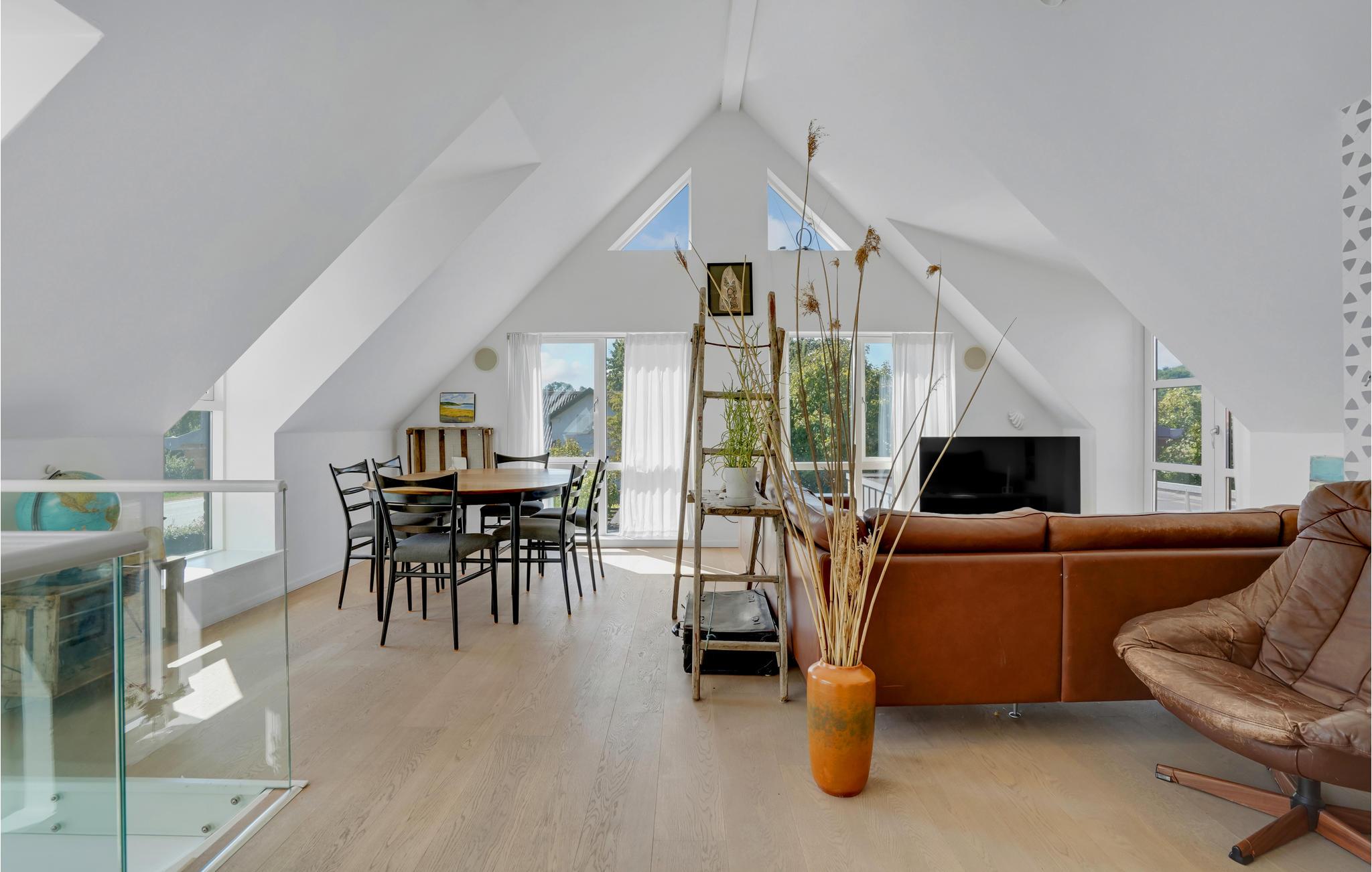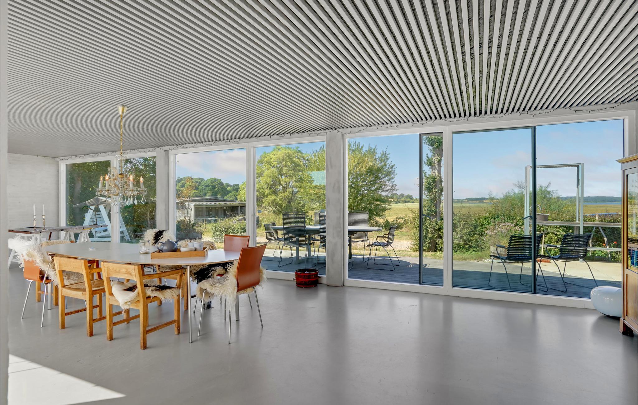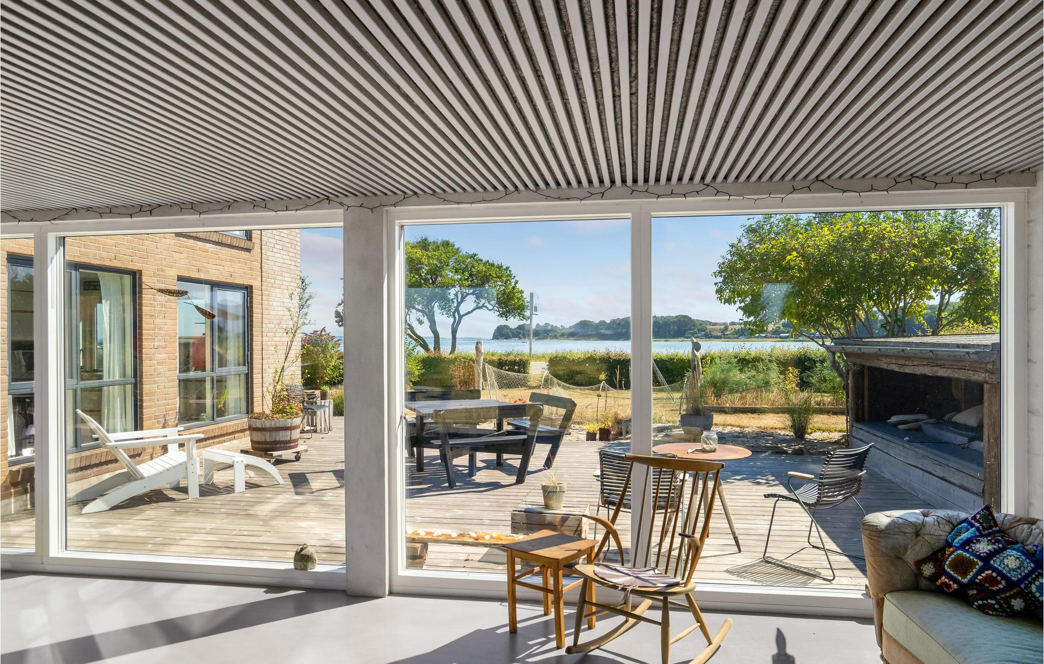 Velkommen til dette store feriehus med panoramaudsigt over vandet. Det er meget lyst og smagfuldt indrettet og har plads til en stor familie eller to små familier. Huset er særdeles veludstyret, så I ikke kommer til at mangle noget. Det byder bl.a. på et aktivitetsrum, en hyggelig TV-stue og en spisestue med fantastisk udsigt gennem store panoramavinduer.