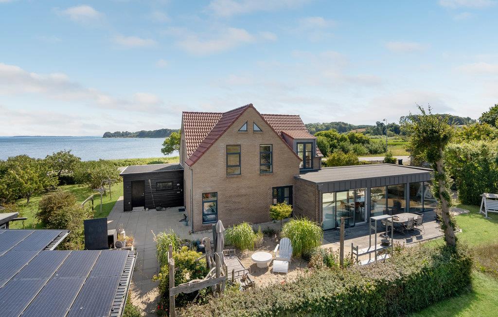 Pragtfuldt feriehus med panoramaudsigt og direkte adgang til sandstrand ved Hejlsminde Bugt.