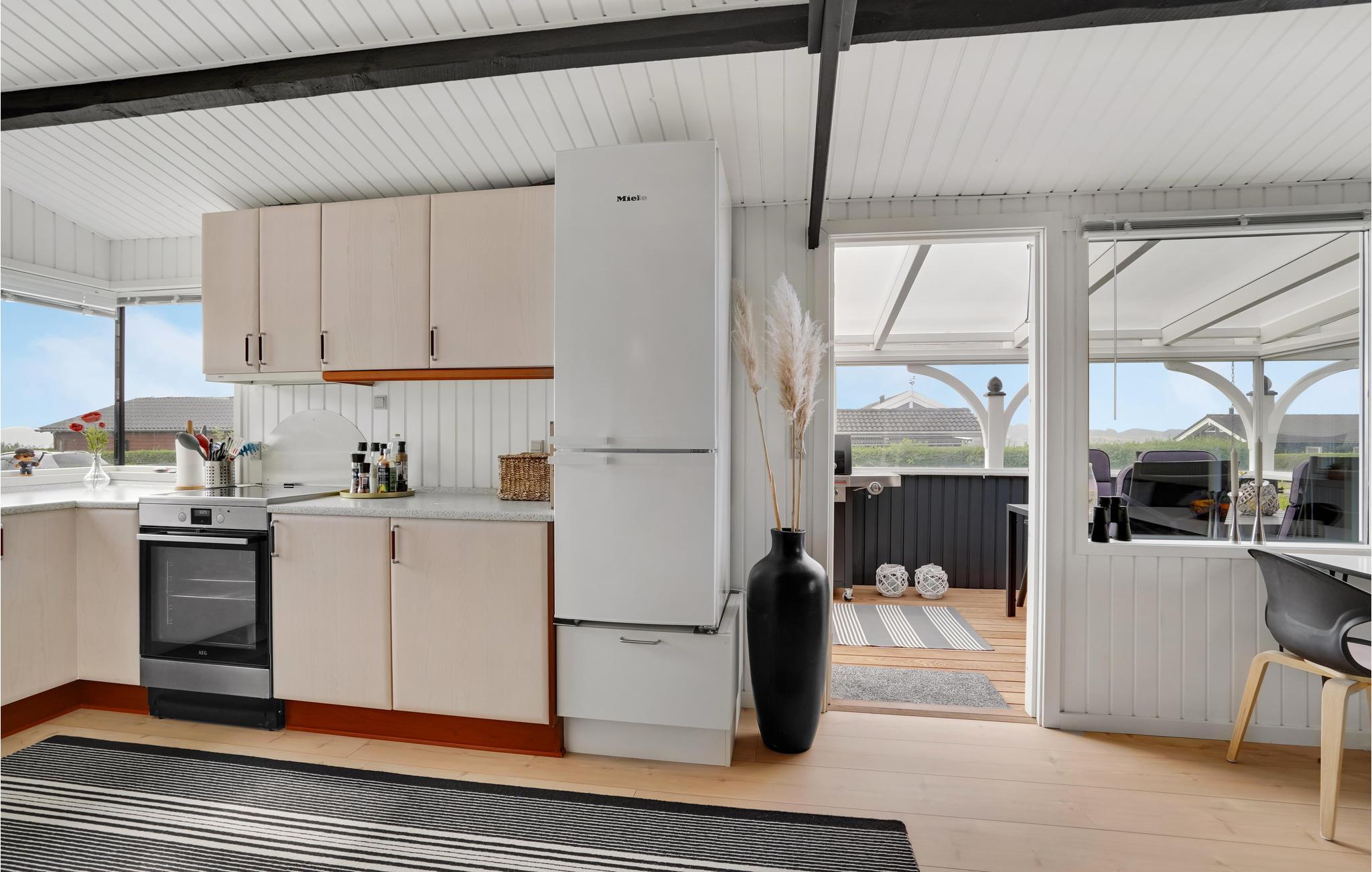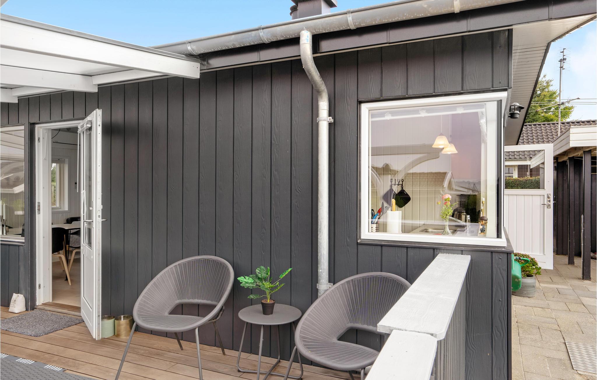 Den vind- og vejrbeskyttede terrasse inviterer jer desuden til at tilberede jeres yndlingsretter på gasgrillen. En anden terrasse på den anden side af huset kan også bruges til solbadning.