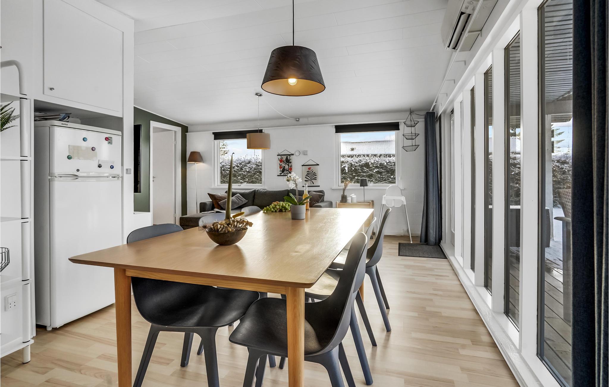 Velkommen til Hejlsminde og dette nydelige hus, der bliver jeres komfortable feriebase. Huset byder på lyse rum med store vinduespartier og behagelige møbler, så I kan slappe godt af og hygge jer. Et højdepunkt er det åbne, veludstyrede køkken, hvor I kan tilberede lækre feriemåltider, og sofahjørnet i stuen med stort fladskærms-TV.