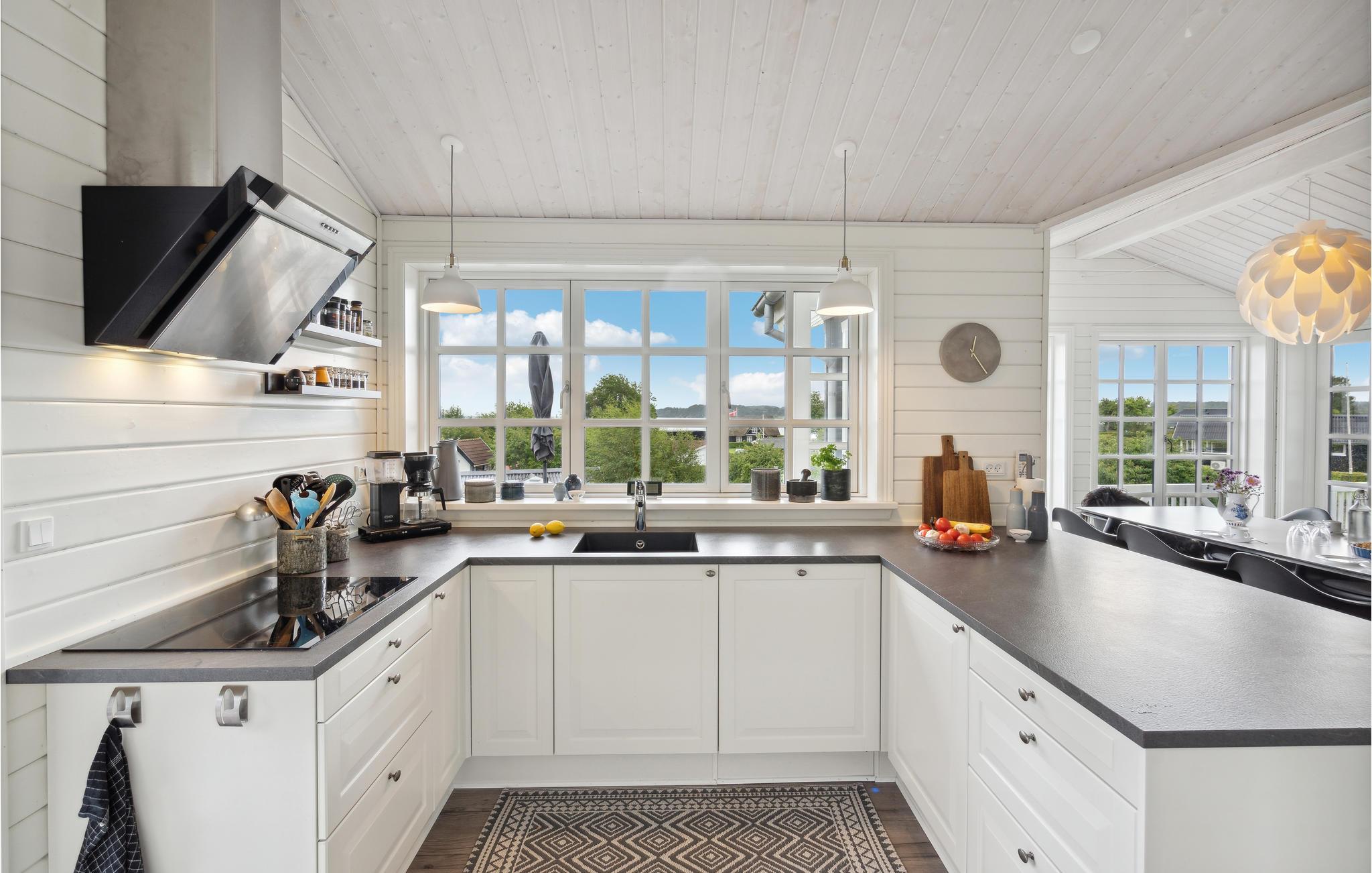 I idylliske Hejlsminde ved Lillebælt byder dette skønt beliggende feriehus jer velkommen blot 100 meter fra vandet. Når I træder indenfor, finder I et lyst interiør, der afslører sans for detaljen og gør et meget indbydende, afslappet indtryk. Nyd udsigten gennem sprossevinduerne, uanset om I står og tryller livretterne frem i det store køkken, sidder samlet rundt om spisebordet eller slapper af i sofahjørnet. Når vejret er godt, kan I nyde dagens første kaffe på terrassen, mens I lader blikket vandre henover vandet og lader jer inspirere til dagens aktiviteter.