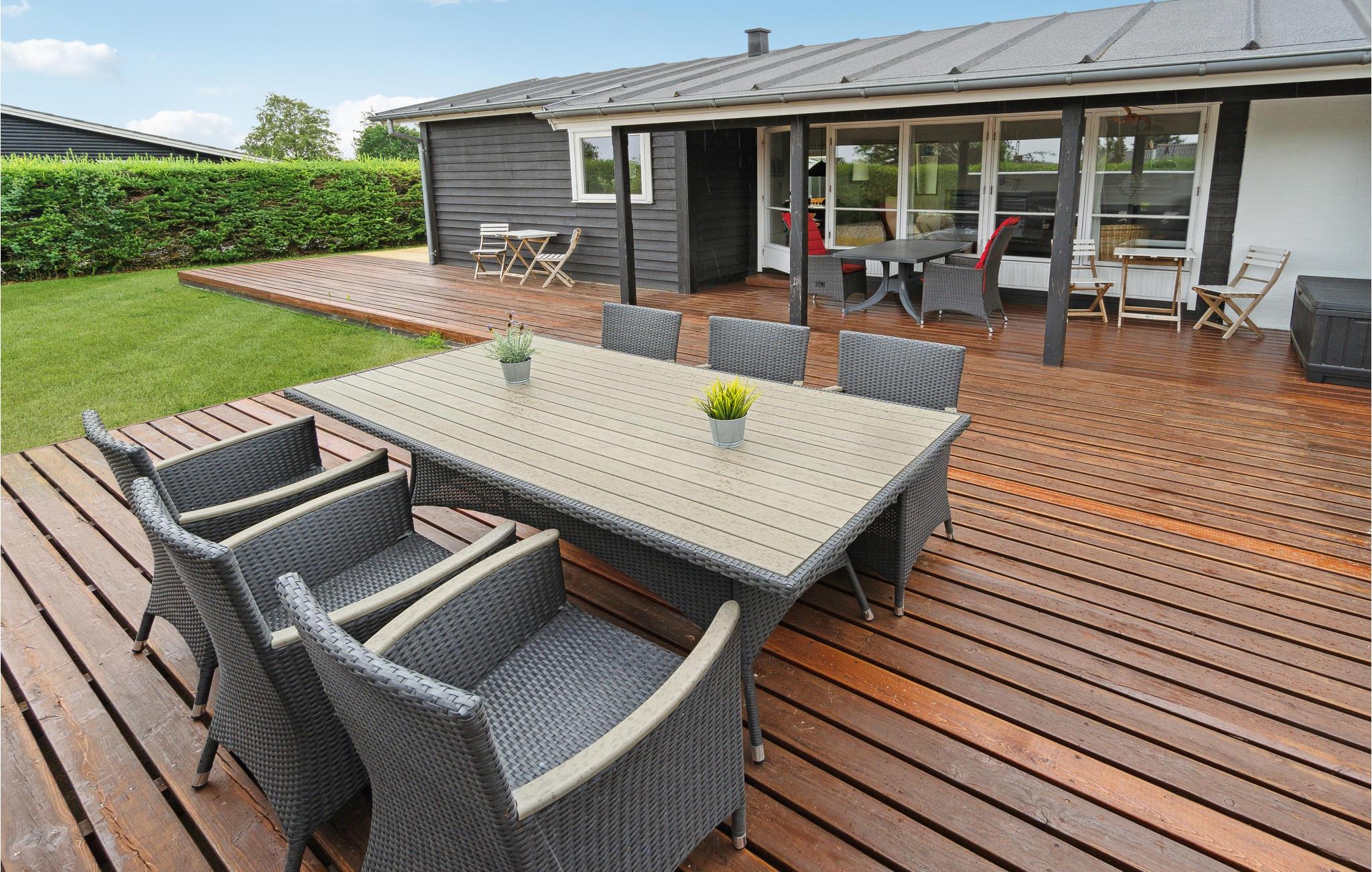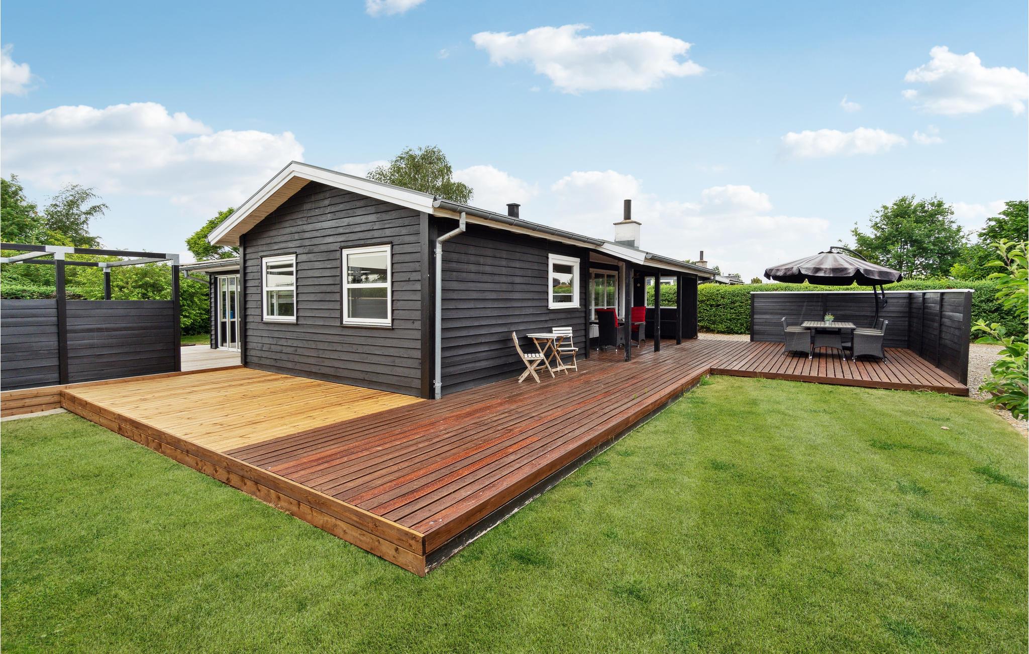 Stilfuldt feriehus i Hejlsminde tæt på strand med brændeovn, have og moderne faciliteter.