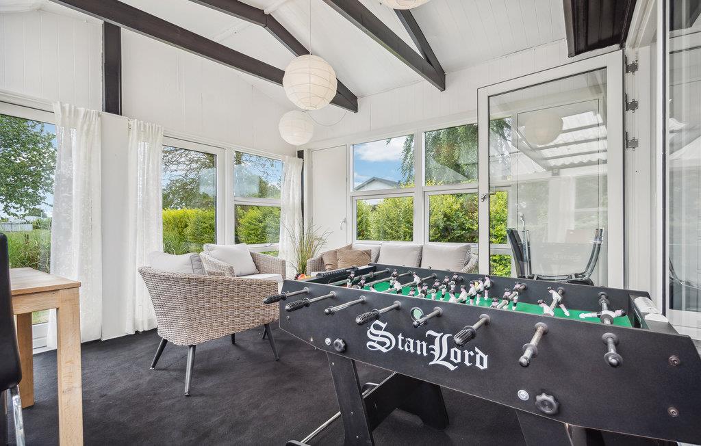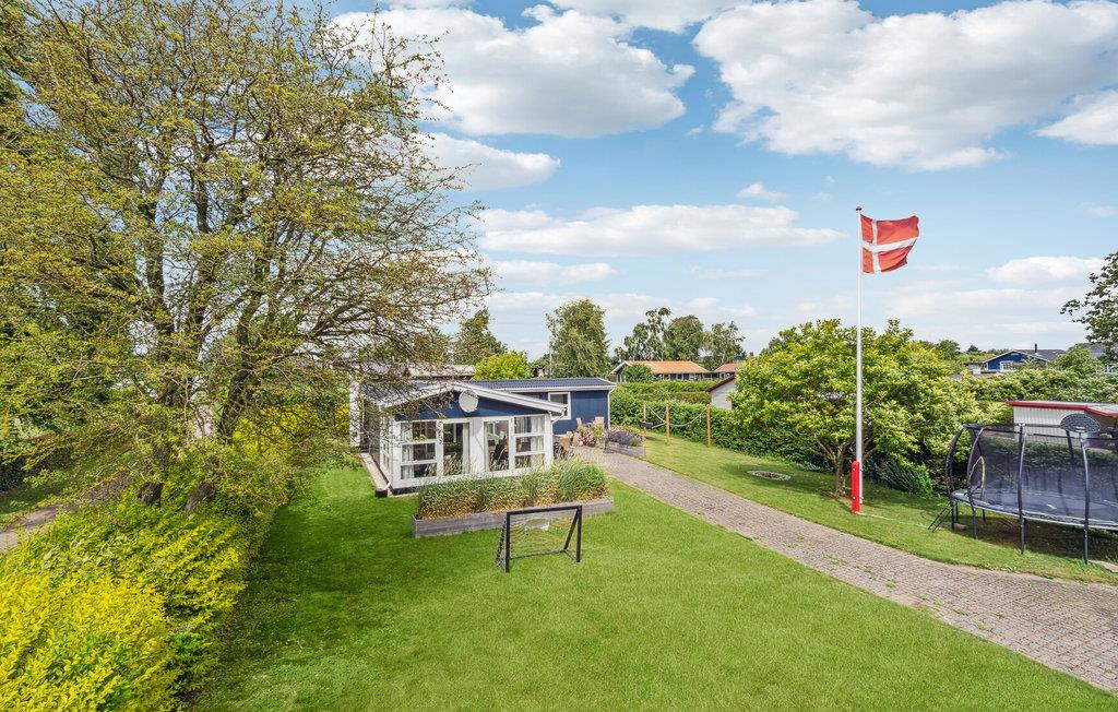 Ikke bare indenfor men også udenfor er der tænkt på hele familien. Tilbring afslappede solskinstimer på liggestolene, mens børnene boltrer sig på trampolinen eller tager en slapper i hængekøjerne. Måske kan I nå en fælles fodboldkamp, inden grillen startes og et lækkert sommermåltid venter jer på terrassen.