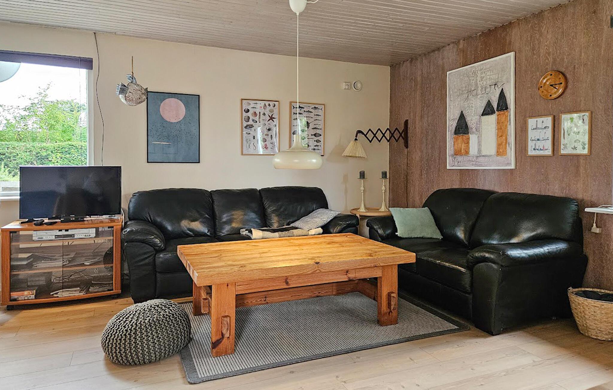 I dette indbydende hus skaber store vinduer, trælofter og varme farver en behagelig atmosfære. Find ro og ny energi, mens I snakker, læser eller lytter til musik. På kølige dage kan I tænde op i brændeovnen og nyde den lune stemning. Køkkenet er praktisk indrettet og har alt, hvad I behøver til fælles måltider. Ved det store spisebord kan I nyde rolige aftener, mens vinden suser gennem træerne udenfor.
