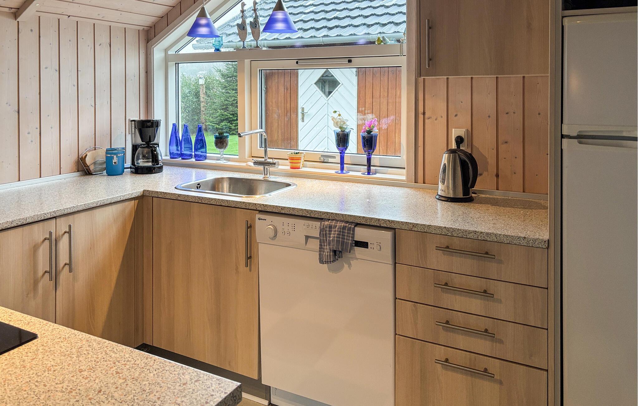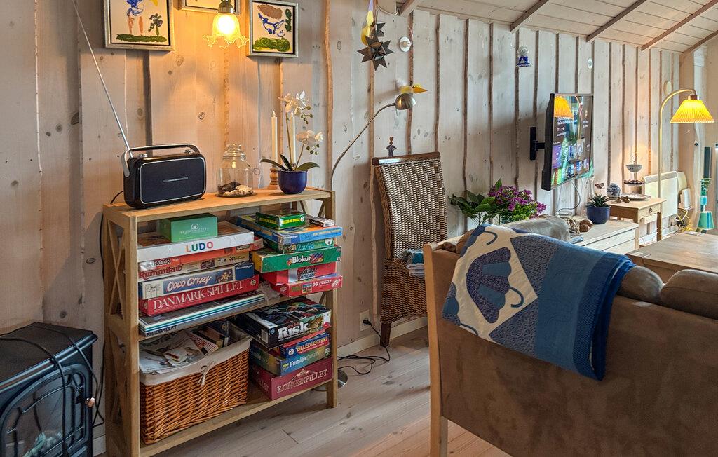Træd indenfor og nyd det lyse interiør med varme træpaneler og åbent design. Sæt jer godt til rette i de komfortable lænestole eller slap af i sofaen. Nyd en rolig filmaften foran tv'et eller spil et af de udbudte spil. Tilbered måltider i det fuldt udstyrede, åbne køkken og tilbring kvalitetstid sammen ved spisebordet. Efter en aktiv dag kan I slappe af i spabadet og lade roen skylle over jer.
