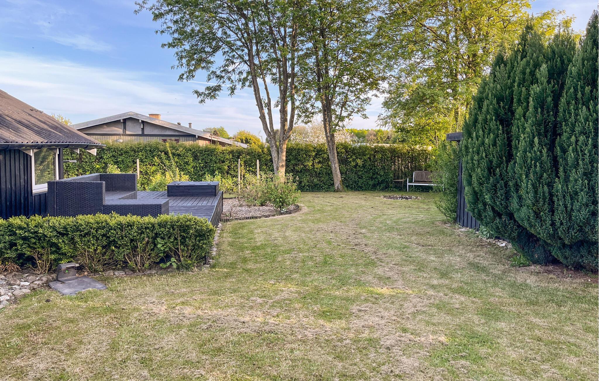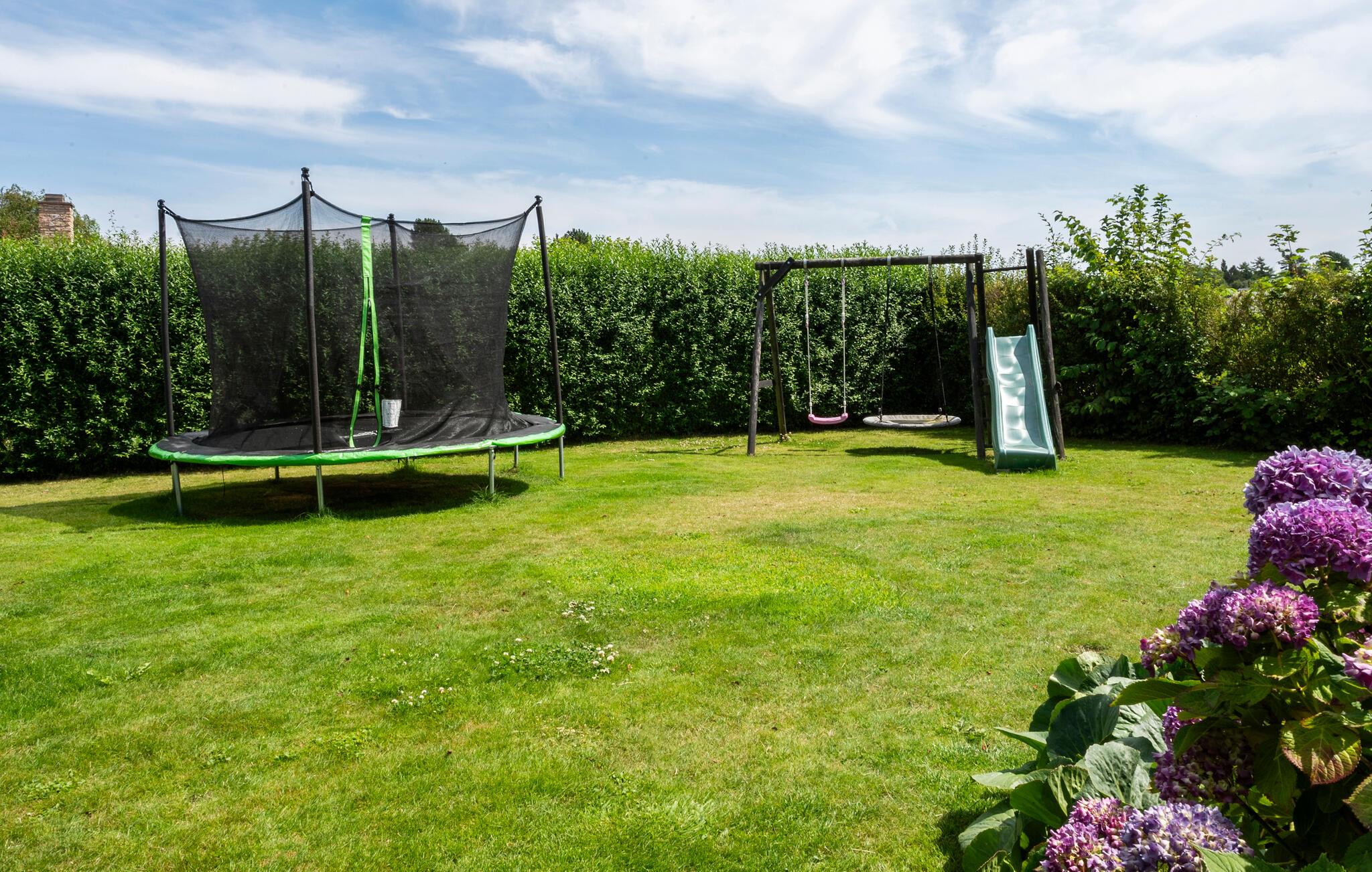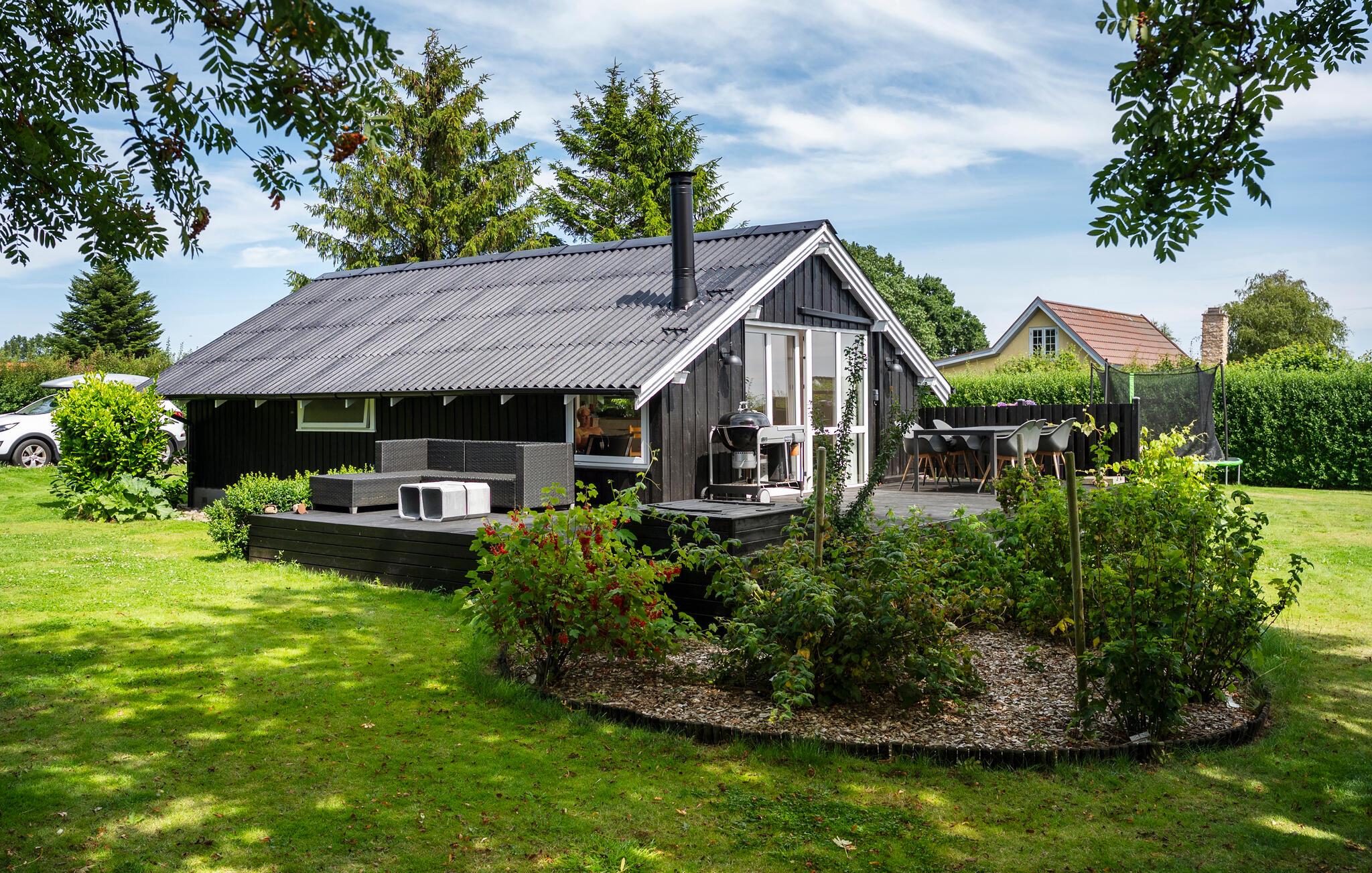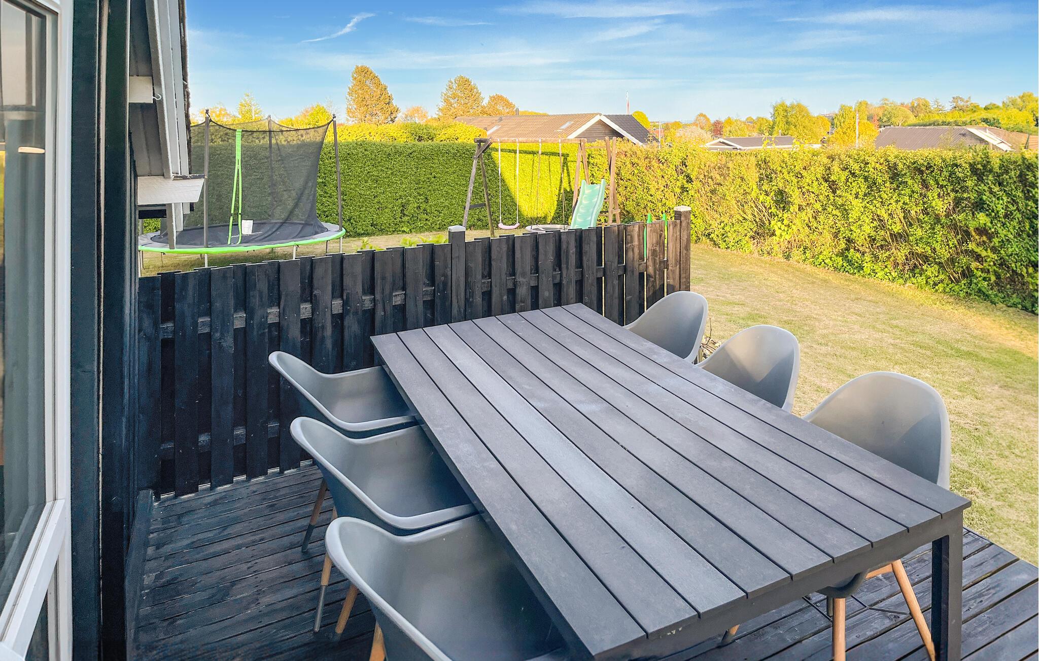 Nyd solen på den store terrasse og tilbring dejlige timer udendørs med udsigt over den velholdte have, hvor børnene kan hoppe om kap på trampolinen. Gør alt klar til en lækker middag under åben himmel.