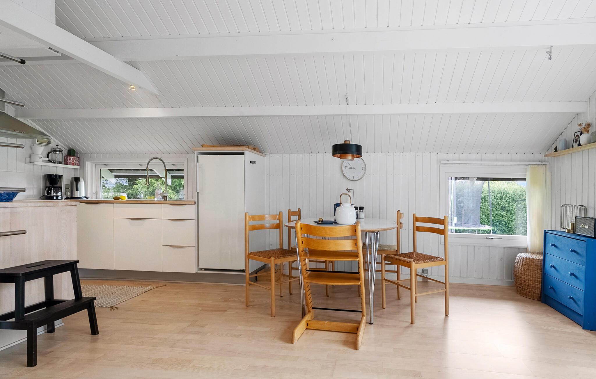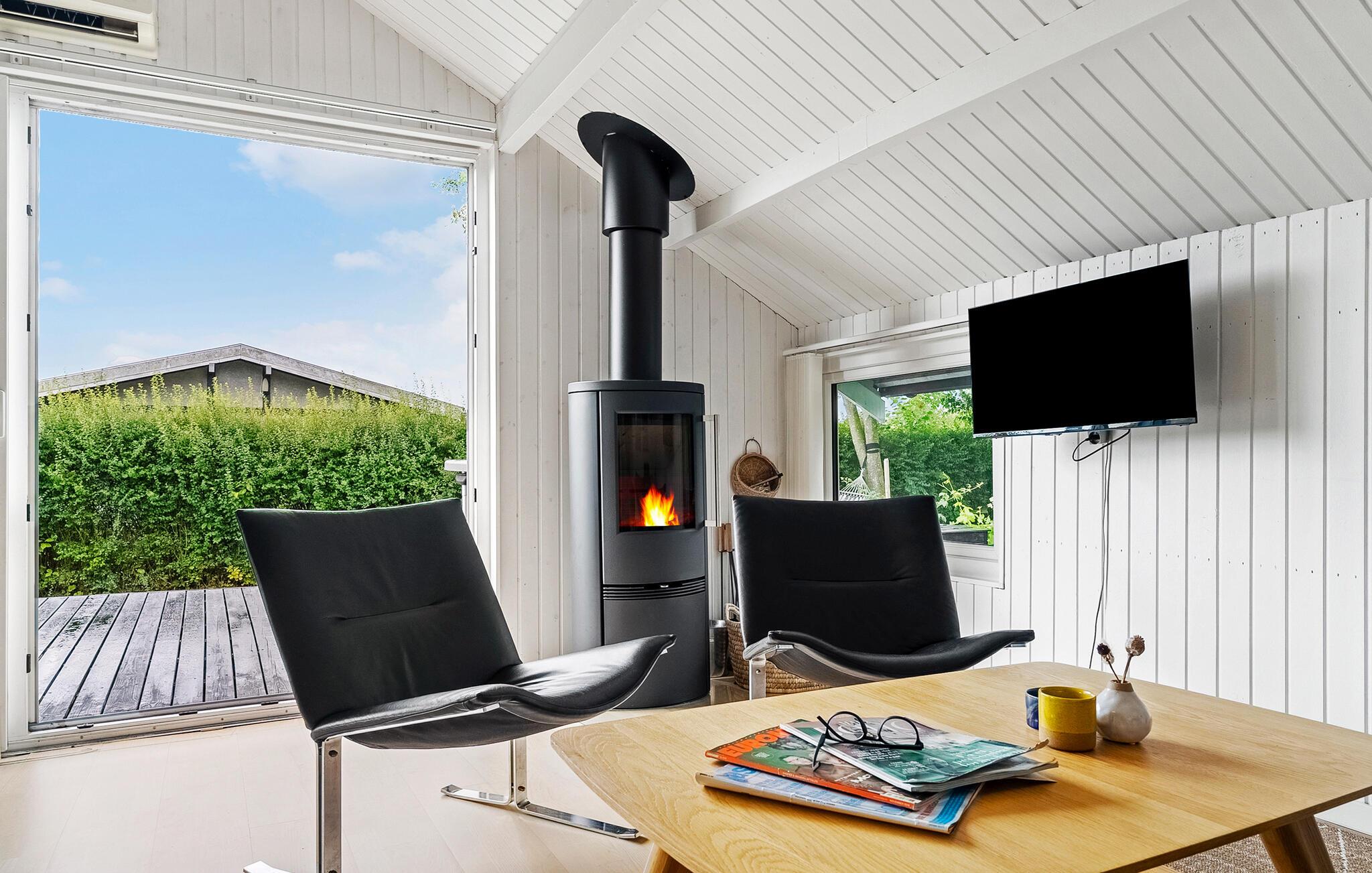 Der venter jer ren ferieafslapning i dette komfortable hus, som er godt placeret i gåafstand fra stranden. Find jer godt til rette i de lyse, stilfulde og moderne værelser. Den behagelige sofa lægger op til hyggelige aftener ved den knitrende brændeovn, måske med en god film som underholdning.