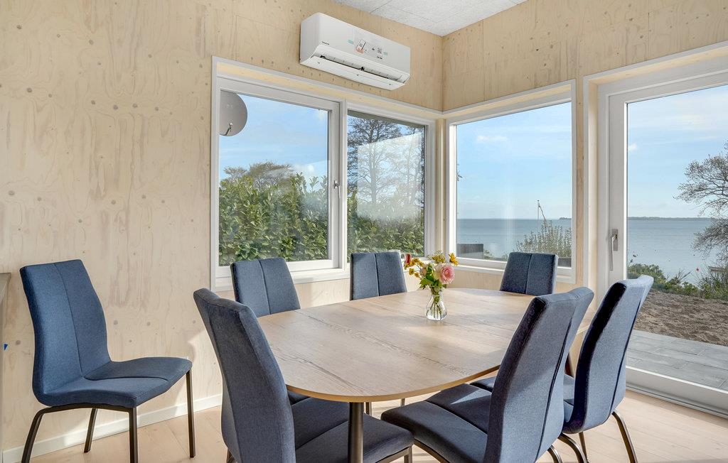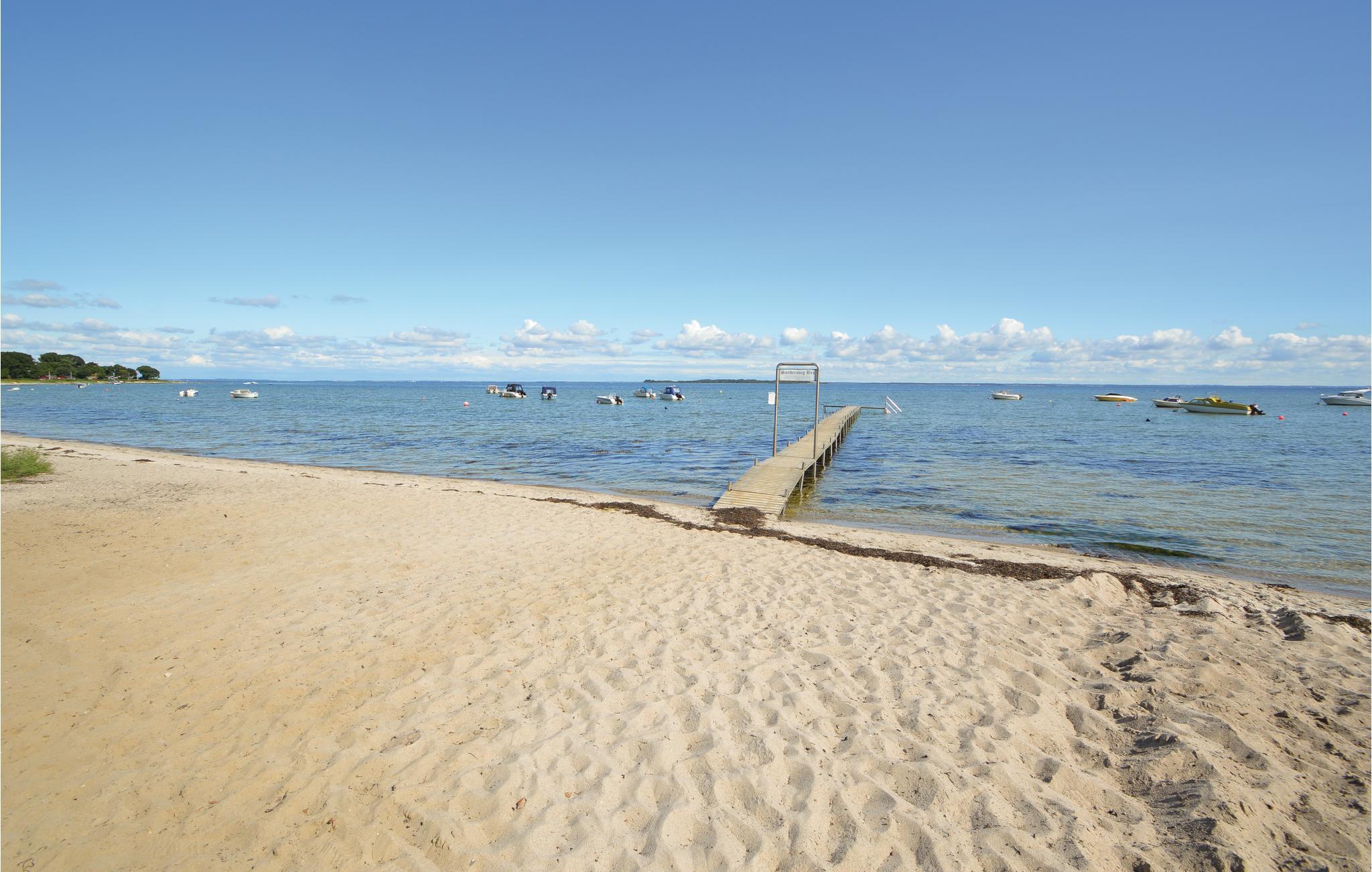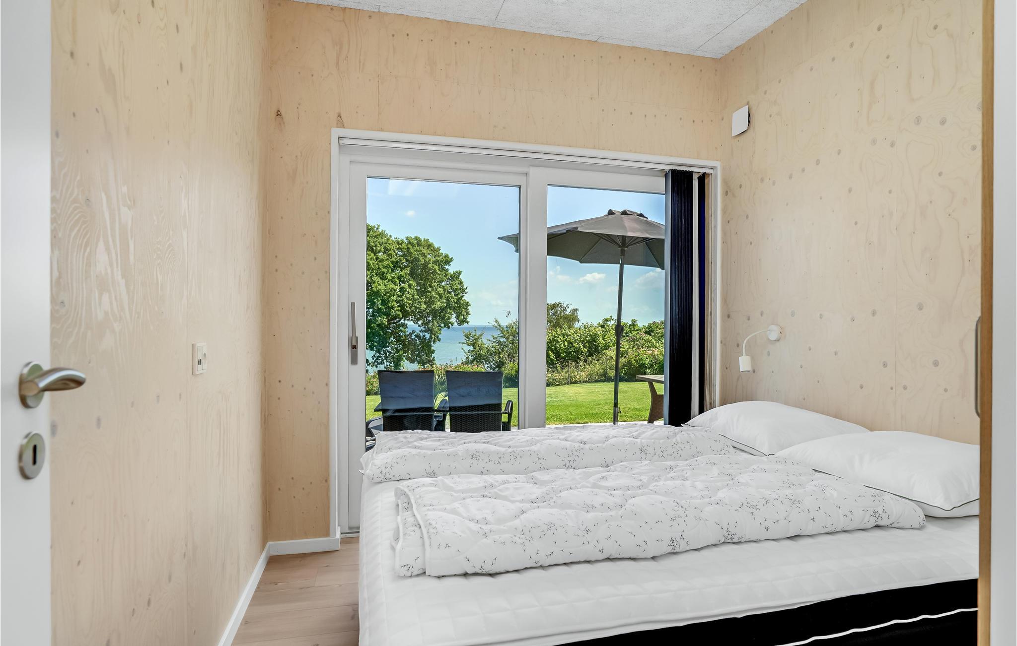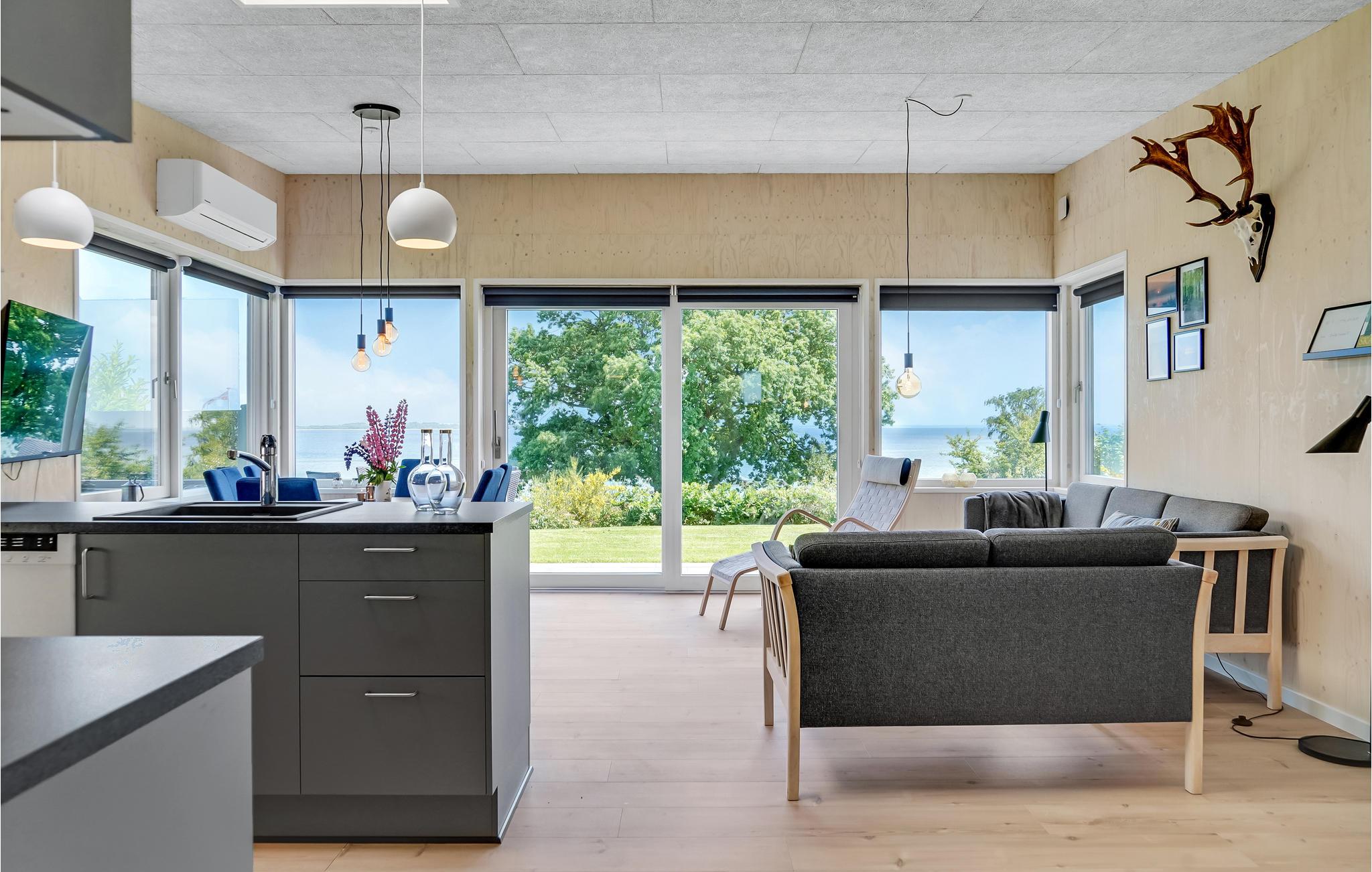 Tæt ved vandet og med panoramaudsigt til vandet fra terrassen og stuen ligger dette hyggelige sommerhus. Her kan I nyde ferien i skønne omgivelser med skov, dejlig natur og strand, ganske tæt ved huset. Kun 300 m fra huset ligger en indhegnet hjortepark, hvor I kan opleve de imponerende krondyr i deres frie natur. Mod betaling er der adgang til tropisk badeland kun 800 m fra huset.