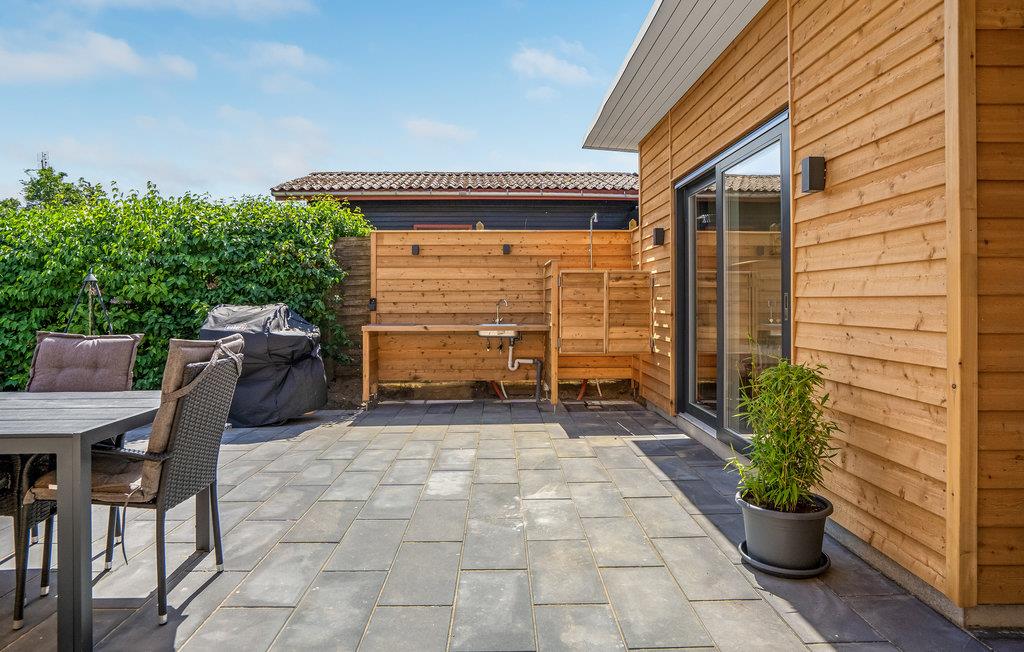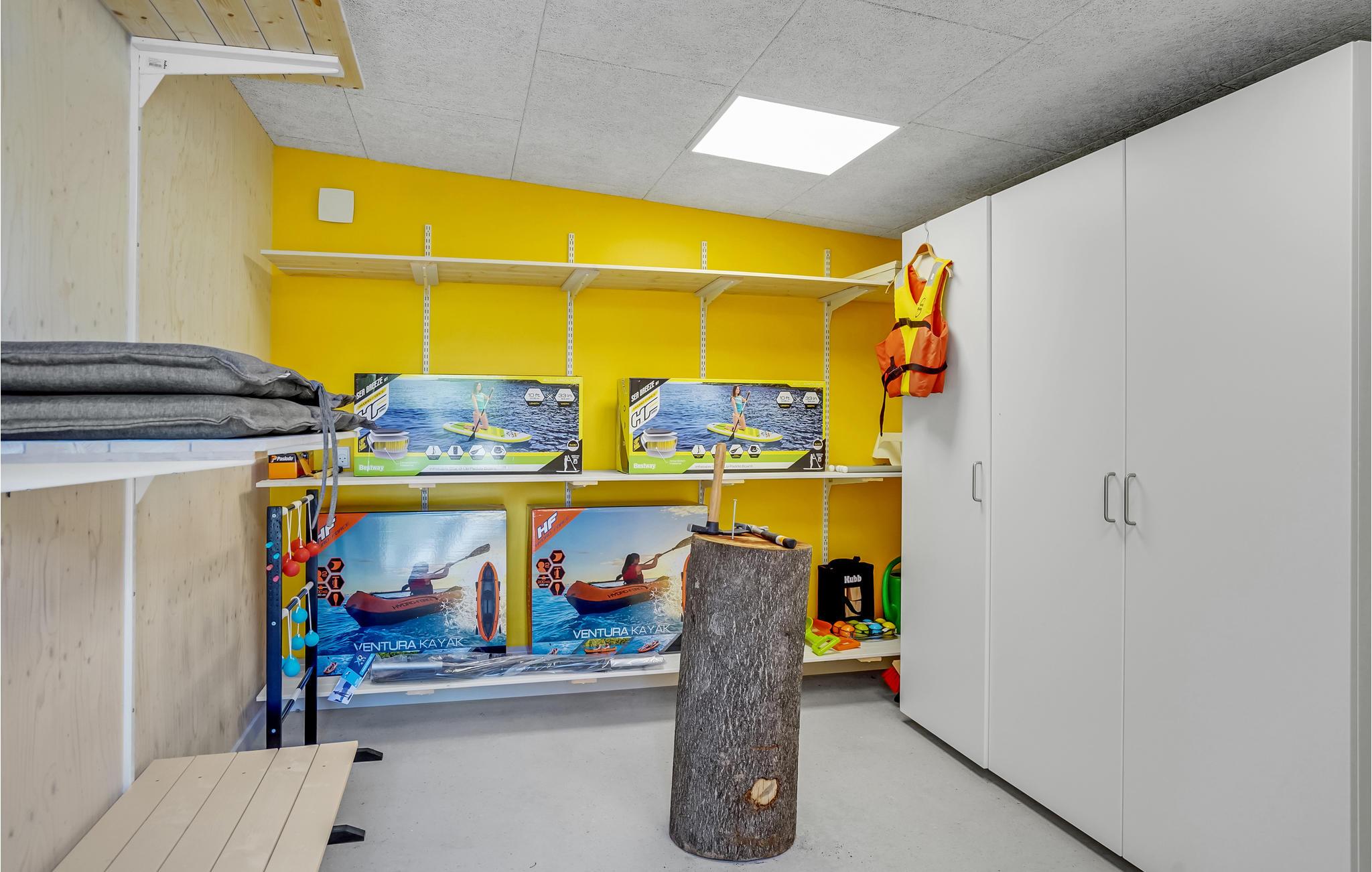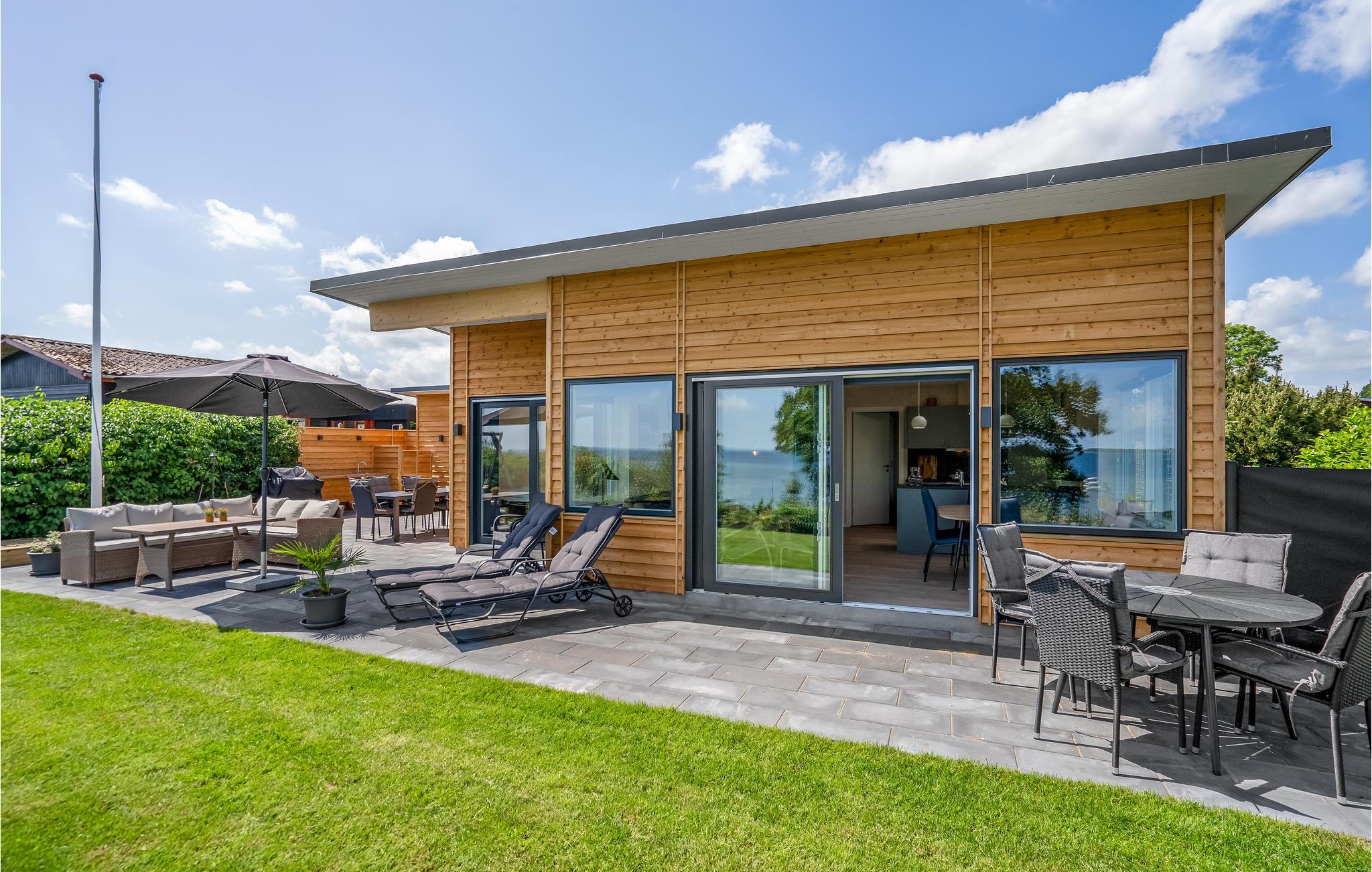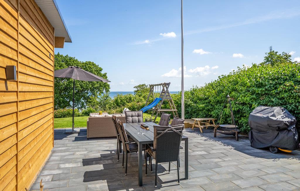 Tæt ved vandet og med panoramaudsigt til vandet fra terrassen og stuen ligger dette hyggelige sommerhus. Her kan I nyde ferien i skønne omgivelser med skov, dejlig natur og strand, ganske tæt ved huset. Kun 300 m fra huset ligger en indhegnet hjortepark, hvor I kan opleve de imponerende krondyr i deres frie natur. Mod betaling er der adgang til tropisk badeland kun 800 m fra huset.