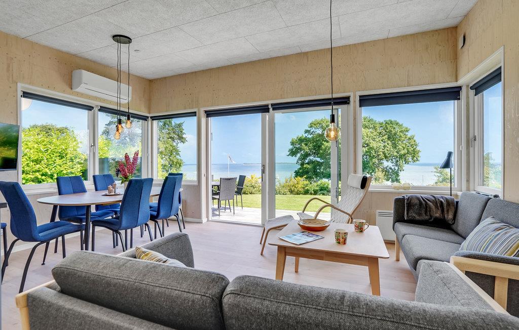 Hyggeligt sommerhus i Hejlsminde med panoramaudsigt over vandet og tæt på natur og strand.