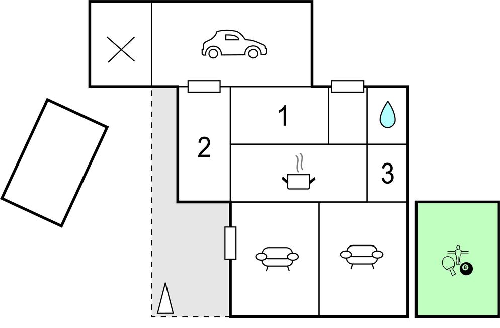 Hyggeligt fritidshus i Hejlsminde med stor have, udestue og aktiviteter som billard og bordtennis.