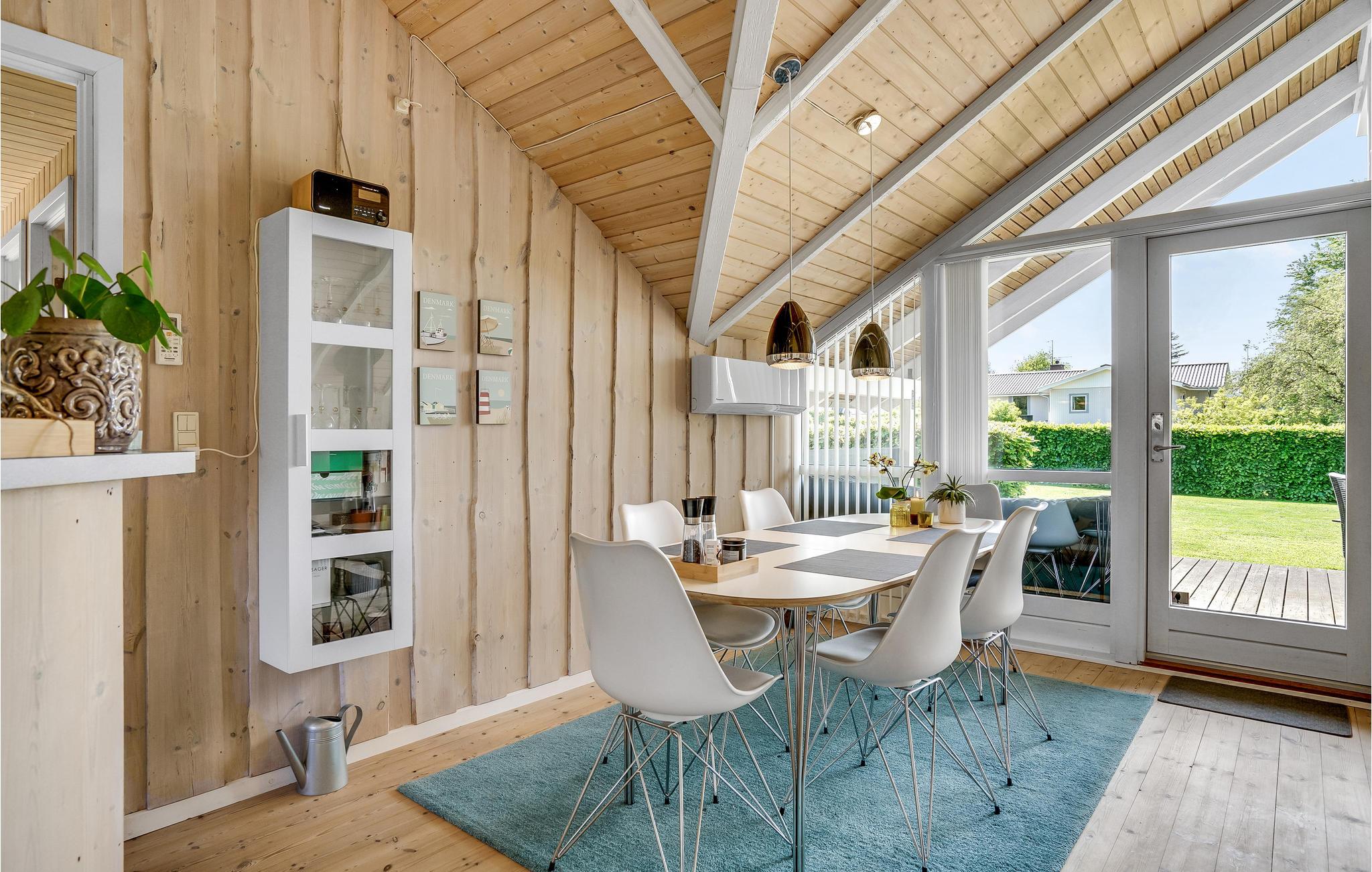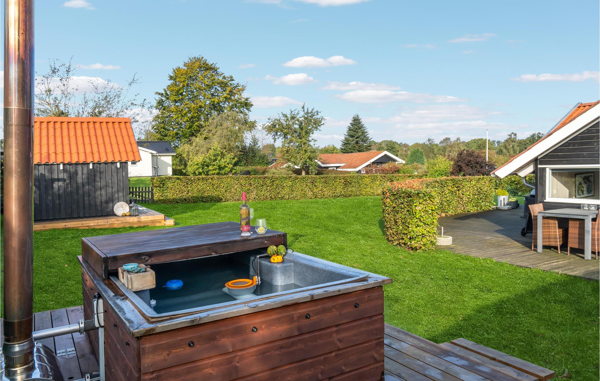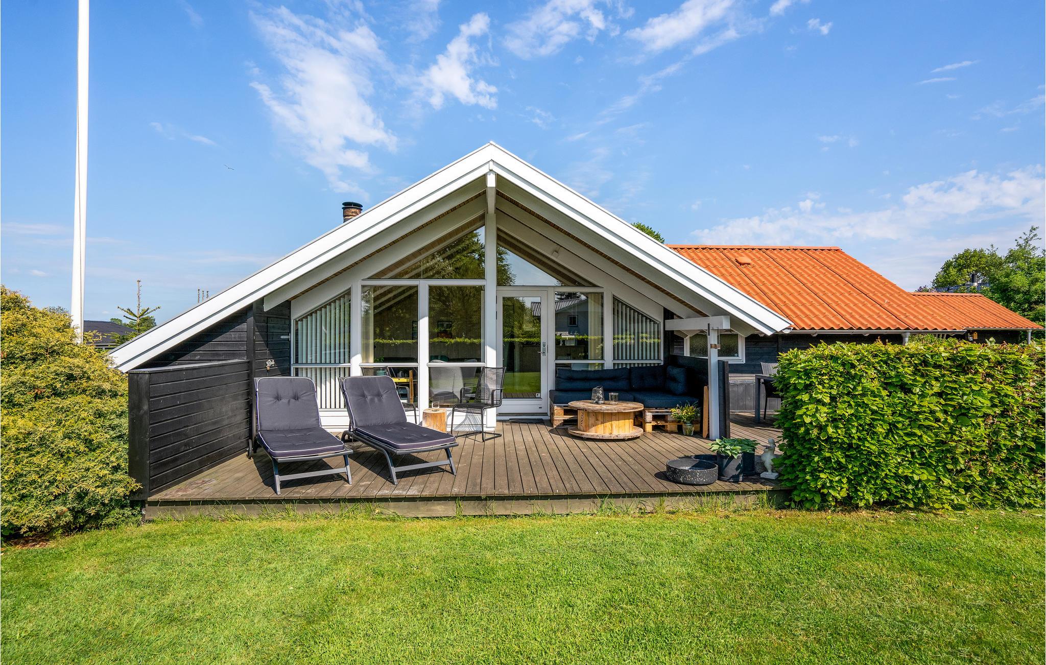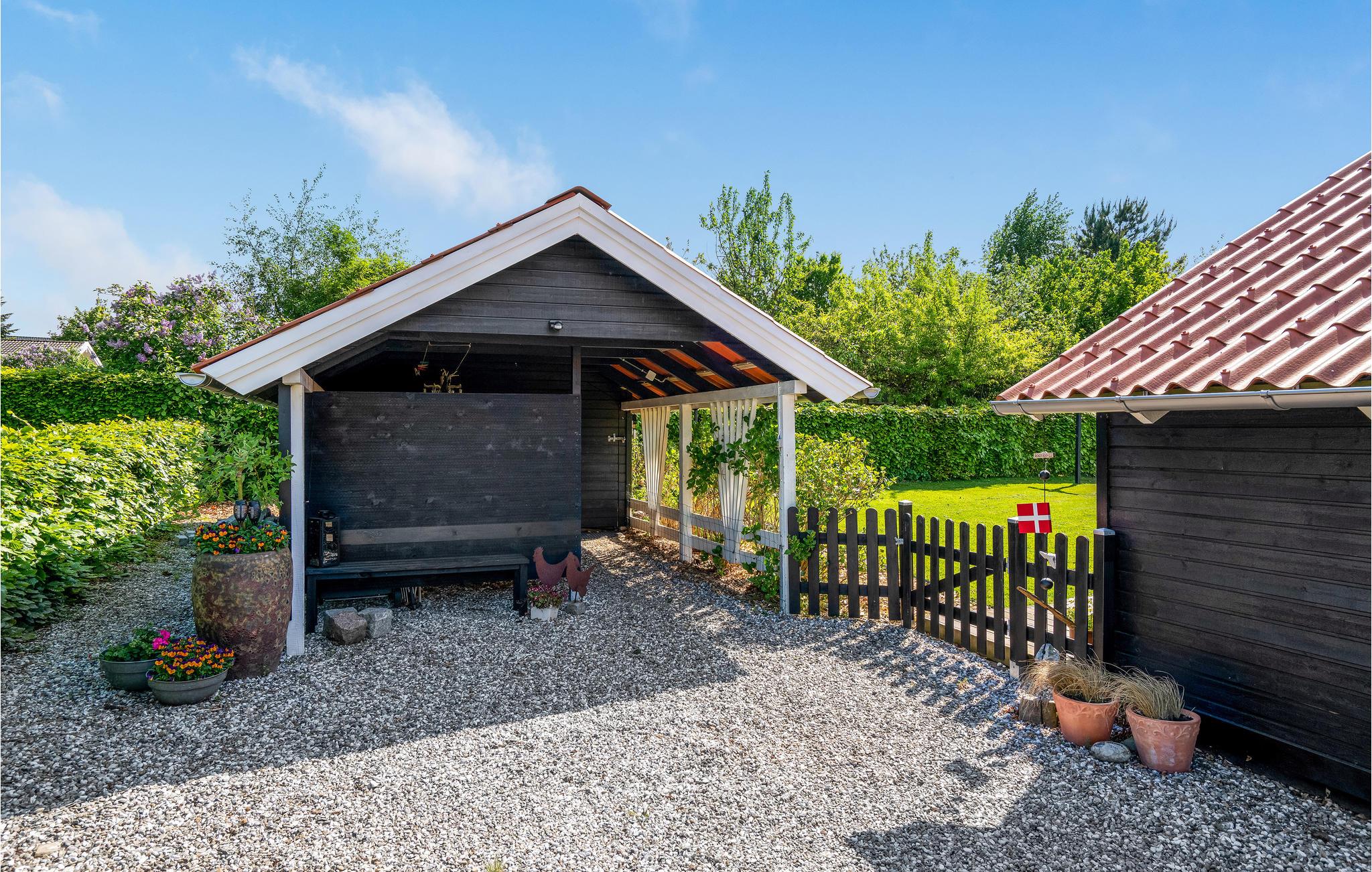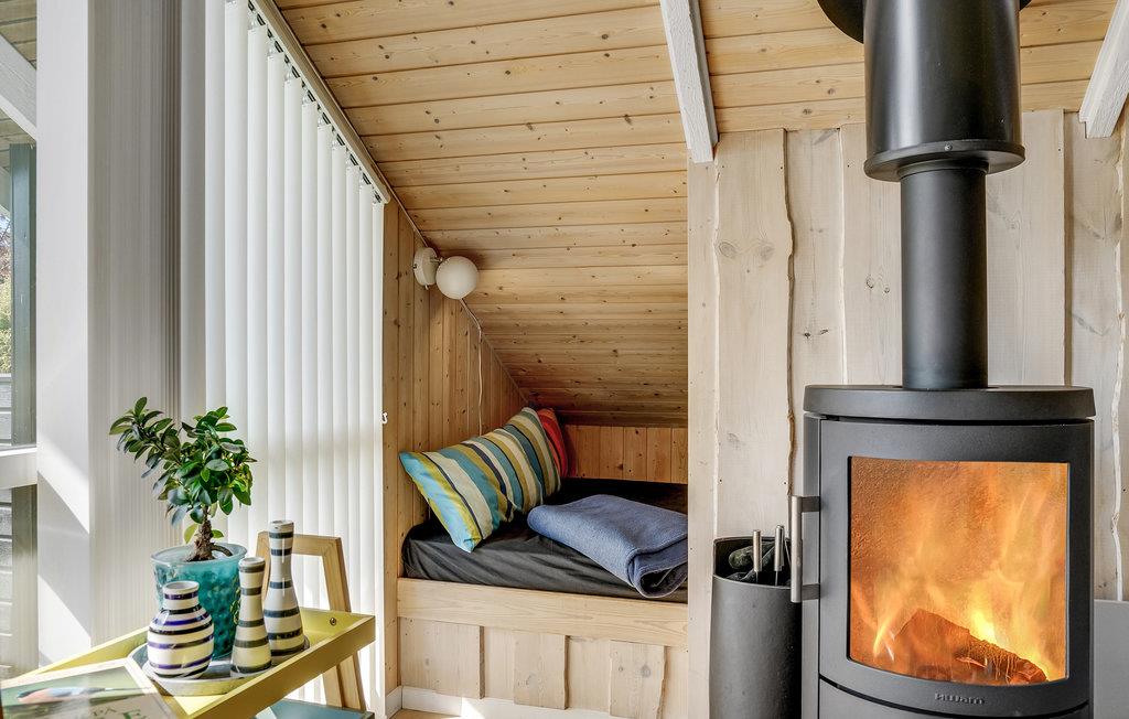Dette hyggelige feriehus ligger på en blind vej med en grund, hvor I kan opholde jer ugeneret. Stuen og køkkenet er i åben forbindelse med direkte udgang til en dejlig, delvis overdækket terrasse med udsyn ud over haven. I huset findes desuden tre gode soveværelser og et fint badeværelse, hvor også vaskemaskinen er placeret. Nyd de lyse sommeraftener på terrassen eller slap af inde foran brændeovnen i stuen på kølige dage og aftener.