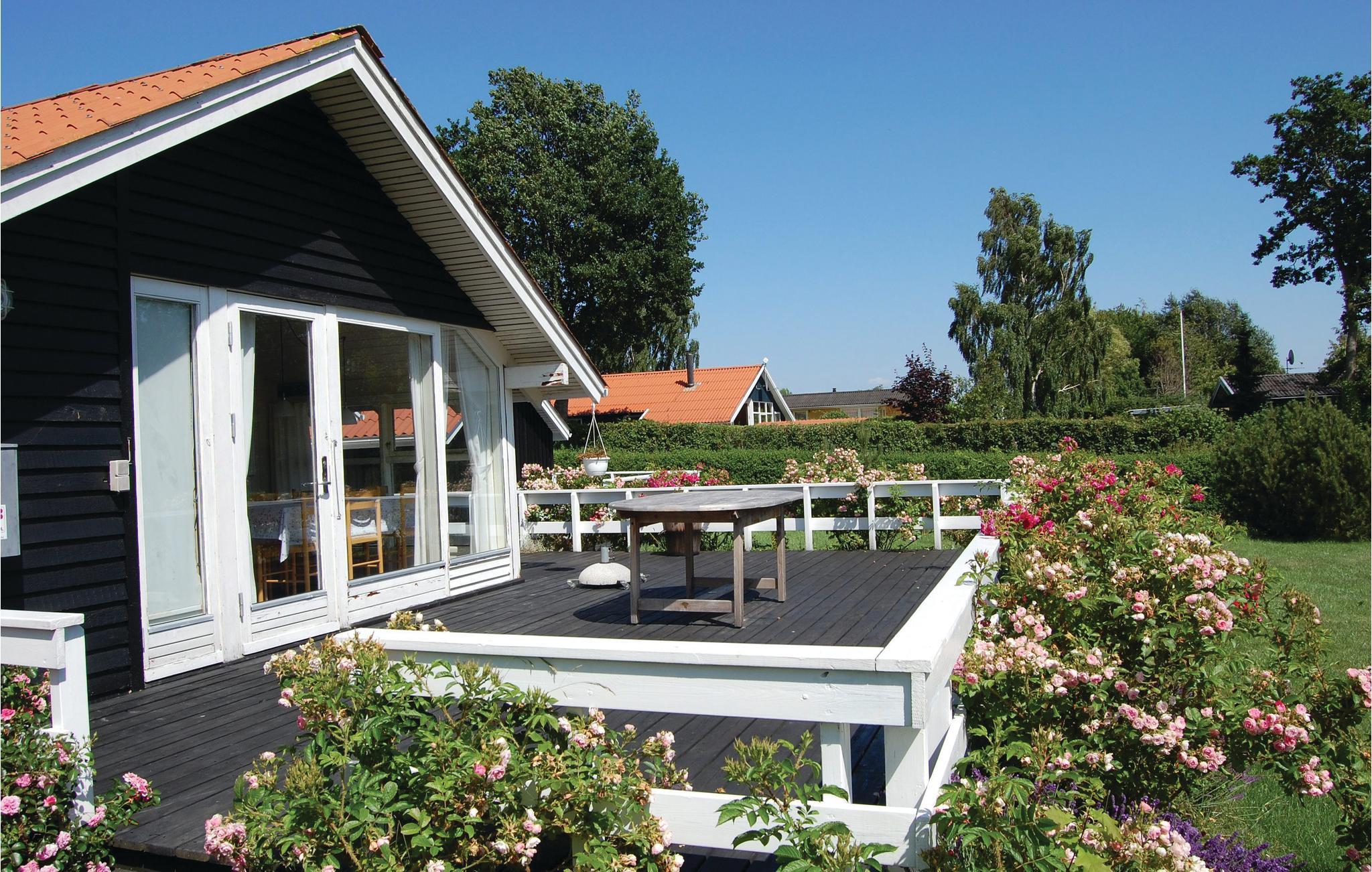 Hyggeligt sommerhus i børnevenligt område tæt på vand med stor terrasse, have og bålsted – perfekt til afslapning og leg.