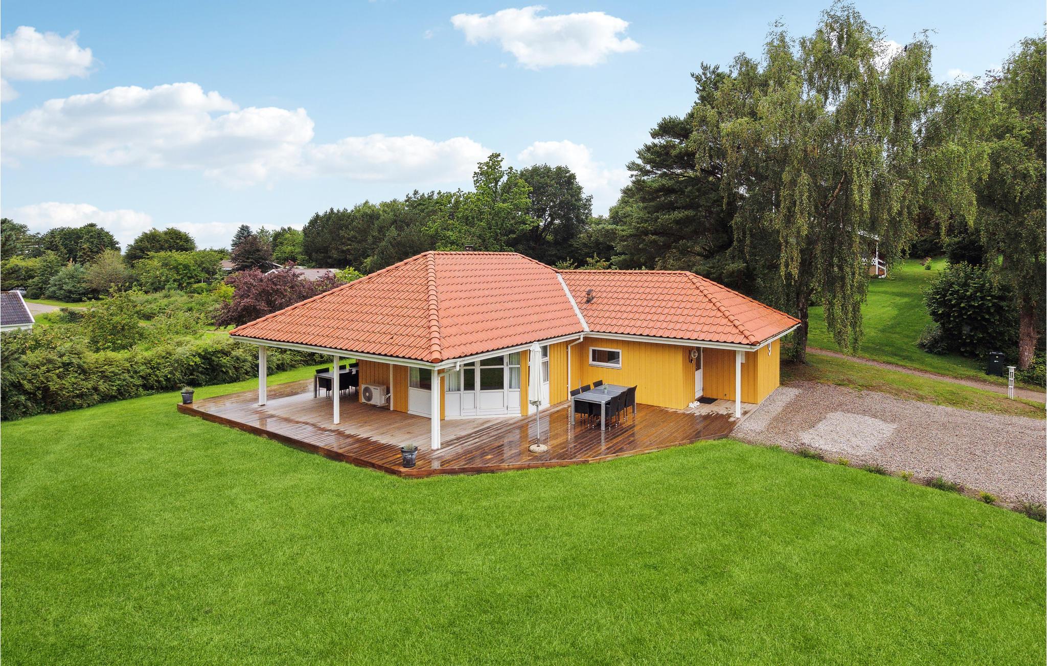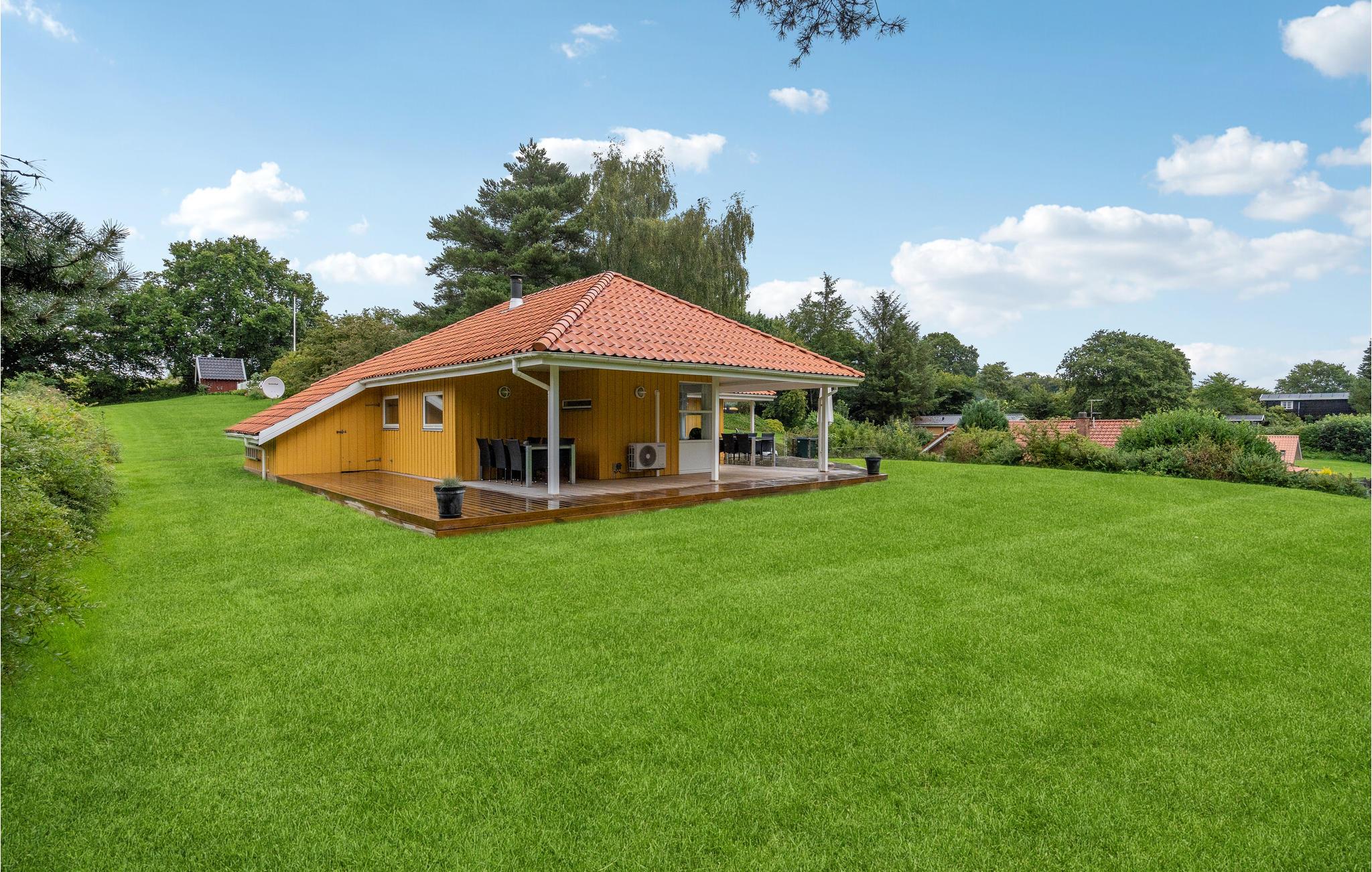 På en højtbeliggende havegrund for enden af blind vej i rolige omgivelser, ligger dette feriehus af træ. Køkkenet ligger i åben forbindelse ind til stuen. Der er klinkegulv i det meste af huset, der iøvrigt er meget velegnet til to familier, da det bl.a. indeholder to badeværelser, der begge har gulvvarme. På den store grund og på terrassen, hvoraf en del er overdækket, kan I nyde de lune sommerdage og -aftener. Hejlsminde ligger ved Lillebælt i et naturskønt område nær skov, strand, seværdigheder og naturattraktioner. Byen har en hyggelig bådehavn, og flere steder er der udsigt til Fyn. Benyt jer af de mange fine gang- og cykelstier, der er anlagt i naturen. Ikke langt fra Hejlsminde ligger det smukke naturområde Skamlingsbanken. Købstadsbyen Christiansfeld er kendt i hele landet for sine honningkager, kakkelovne og spegepølser. I Kolding og omegn findes en mangfoldighed af oplevelser - uanset om I er til ferie i børnehøjde, aktiv ferie eller er kunst- og kulturbegejstret. Her kan nævnes Kunstmuseet Trapholt, Koldinghus, gågaderne med det hyggelige cafémiljø eller Kolding Storcenter, der med sine mange butikker under et tag frister til powershopping. Der er også mulighed for en tur i Legeparken, der byder på mange gratis glæder.