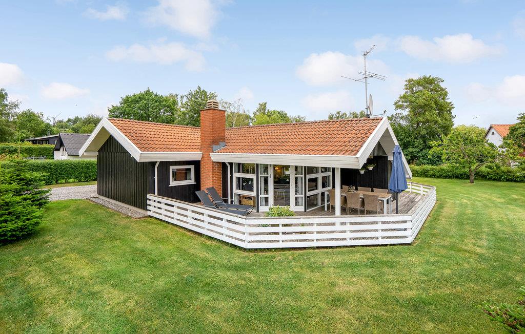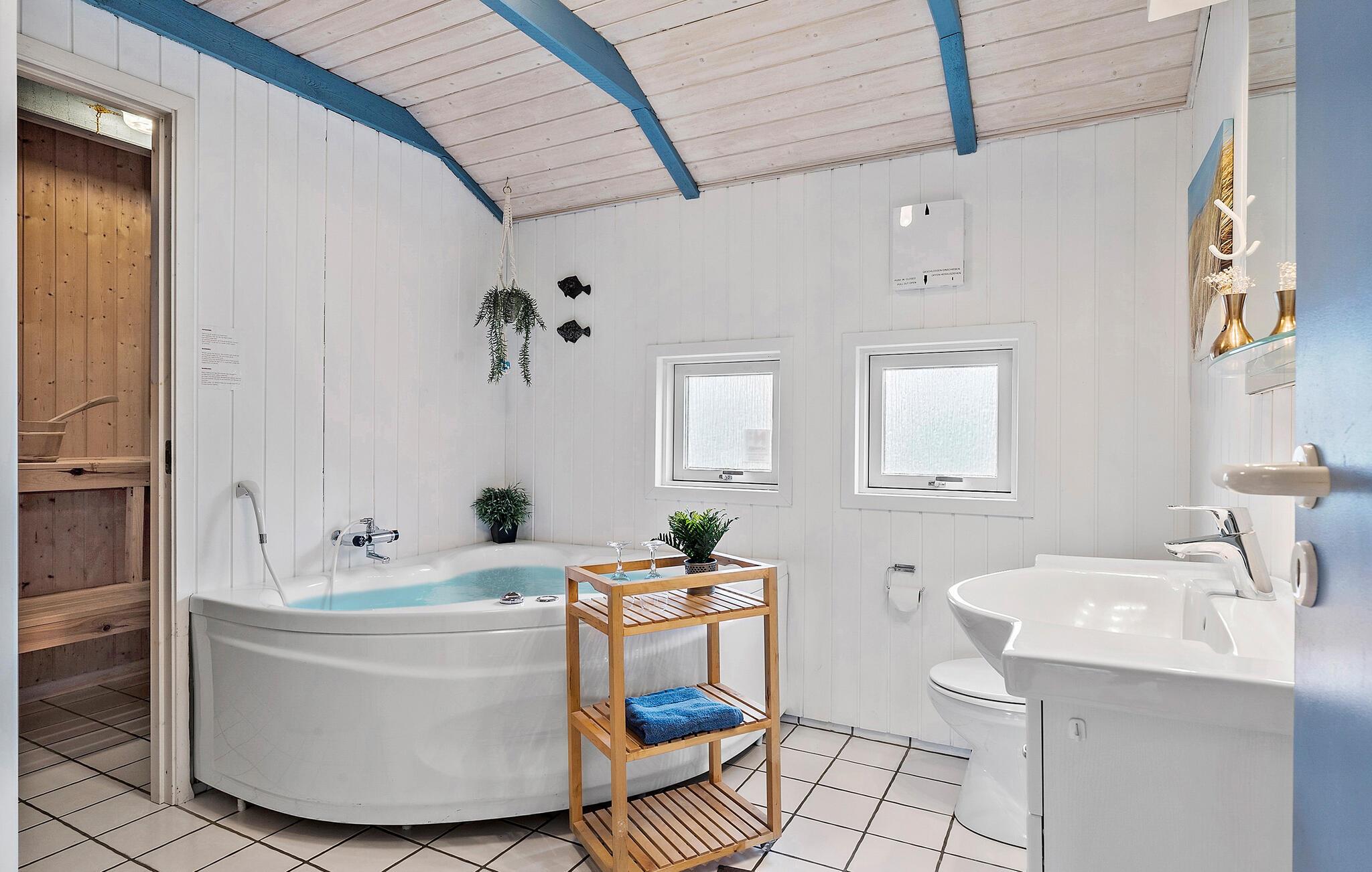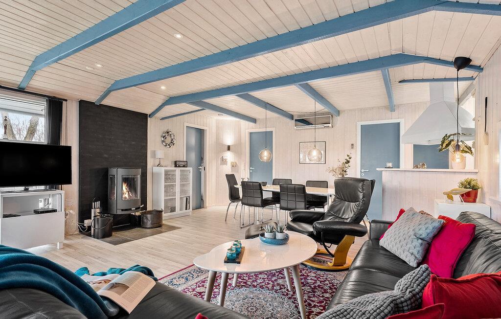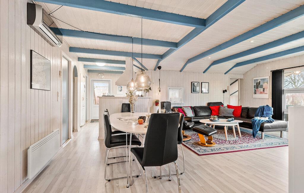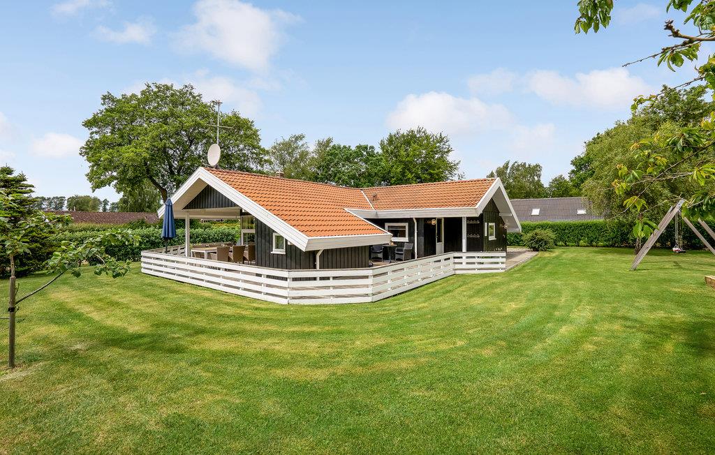 På en stor, lukket havegrund ligger dette dejlige feriehus. Huset er godt udstyret og indretningen er smagfuld og komfortabel med stuen og køkkenet i åben forbindelse. Få en wellnessoplevelse i det store badeværelse med spabad og sauna. I vinterperioden kan I få varmen efter en skøn gåtur ved at tænde op i brændeovnen eller varmepumpen. Fra huset er der udgang til den store delvis overdækkede terrasse med flere gode siddepladser, så I kan flytte jer efter solen eller skyggen.