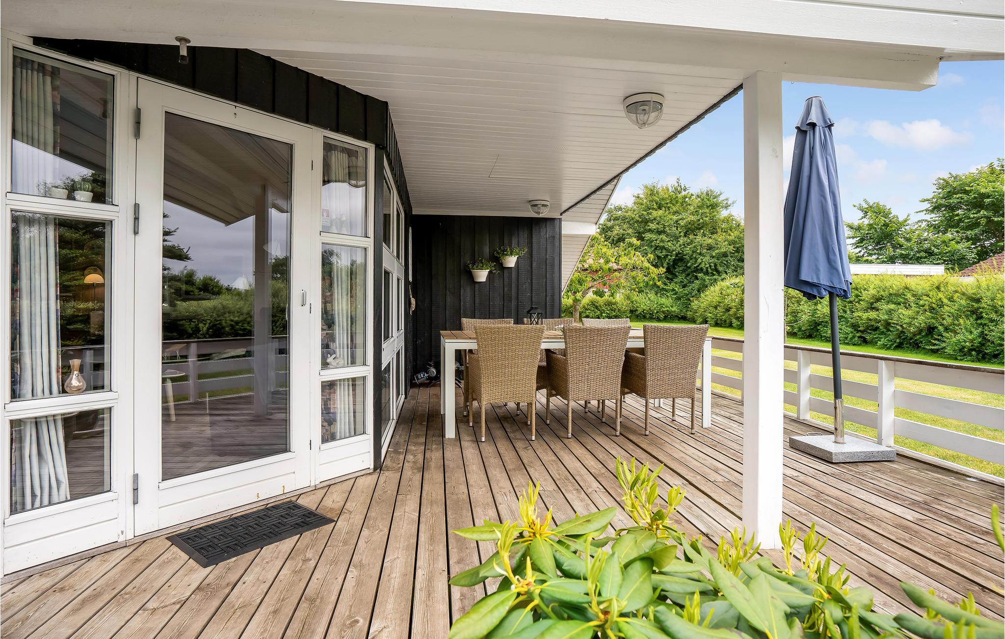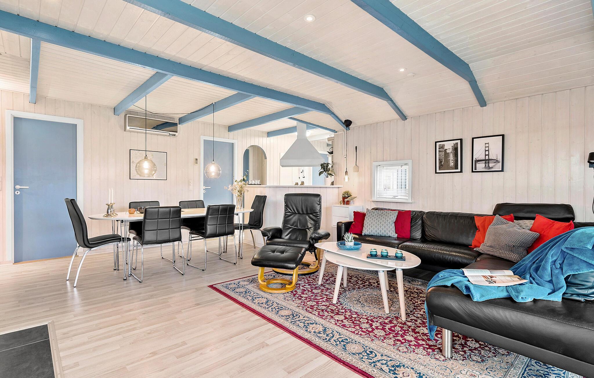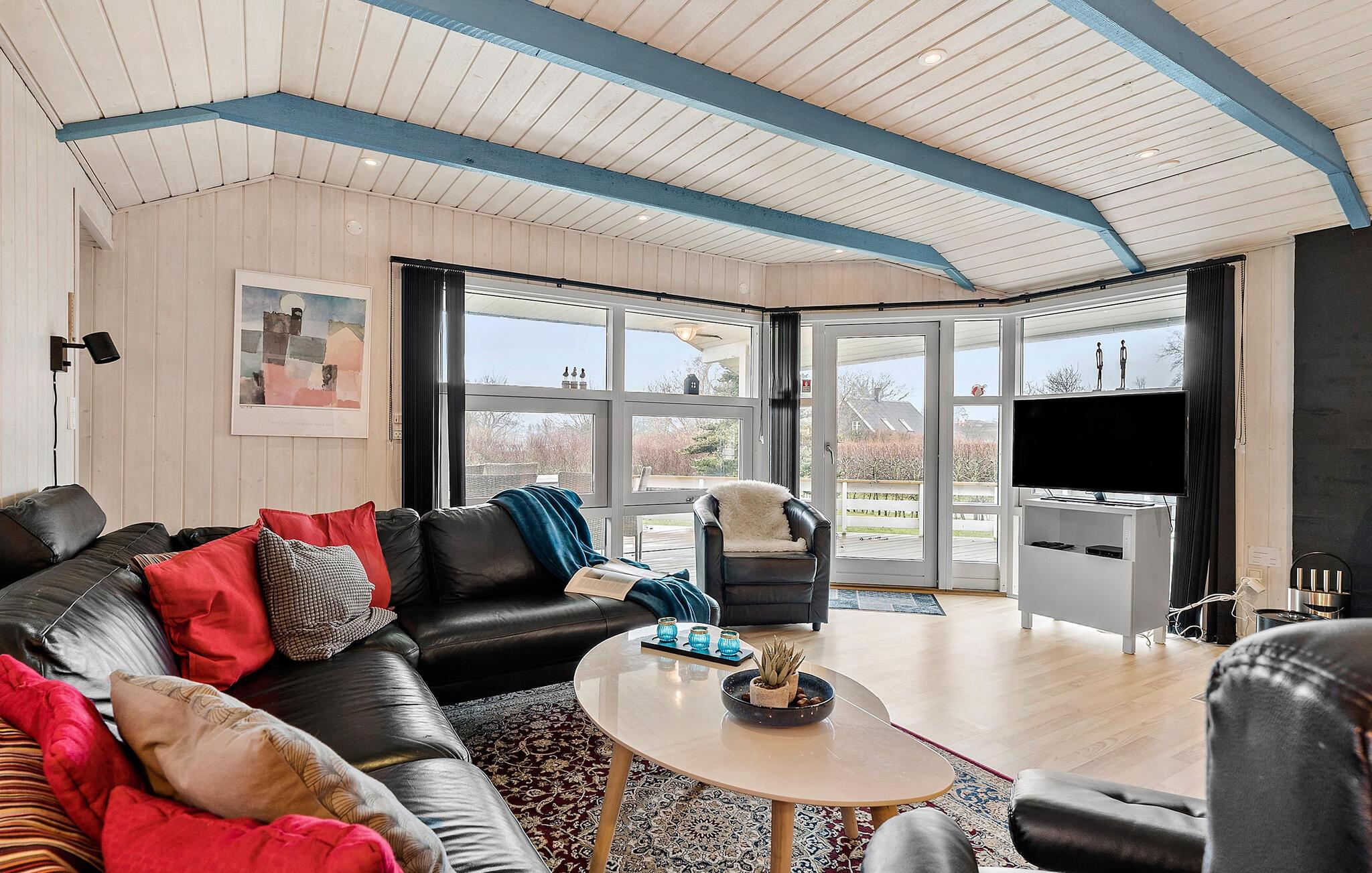 På en stor, lukket havegrund ligger dette dejlige feriehus. Huset er godt udstyret og indretningen er smagfuld og komfortabel med stuen og køkkenet i åben forbindelse. Få en wellnessoplevelse i det store badeværelse med spabad og sauna. I vinterperioden kan I få varmen efter en skøn gåtur ved at tænde op i brændeovnen eller varmepumpen. Fra huset er der udgang til den store delvis overdækkede terrasse med flere gode siddepladser, så I kan flytte jer efter solen eller skyggen.