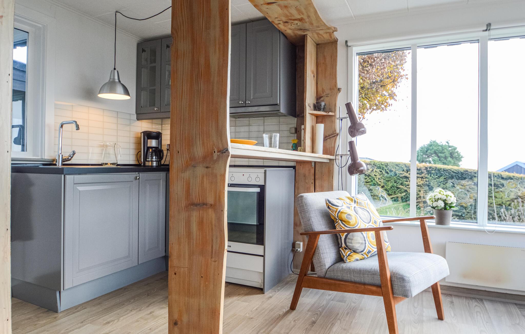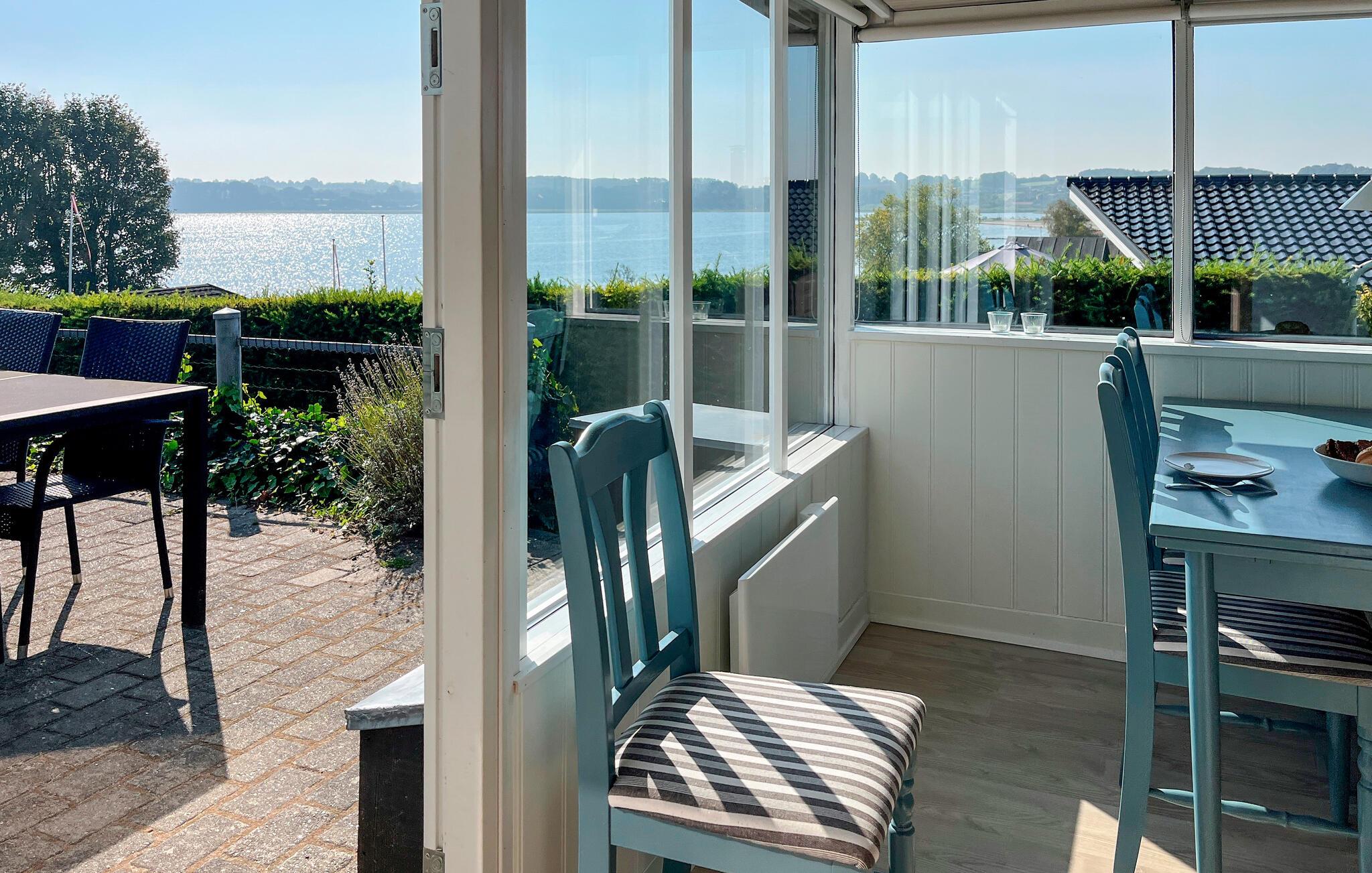 Her får I et rigtig autentisk sommerhus med en fabelagtig panoramaudsigt over vandet. Huset er enkelt men funktionelt indrettet. Gennem de store vinduespartier i stuen og spisestuen kan I nyde udsigten, mens I hygger jer foran brændeovnen på kølige dage. Begge soverum afskærmes af et forhæng. På den flotte terrasse kan I sidde og slappe af med en god bog mens børnene leger i haven. Dette smukke område ved Lillebælt er omgivet af fantastisk natur. Langs kysten kan man bade ved pragtfulde badestrande, dyrke vandsport eller fiskeri. Inde i landet er der store skov- og naturområder, velegnet til cykel- og vandreture. Området er rigt af historiske og kulturelle minder, men også nutidens attraktioner og forlystelser lokker med uforglemmelige oplevelser. De større byer Kolding og Haderslev byder hver især på spændende oplevelser. I Kolding finder man bl.a. Minibyen, Koldinghus, Trapholt Museet og Geografisk Have. Haderslevs enestående miljø afspejler sig i både byen og omgivelserne. I de historiske rammer med de grønne oaser oplever du et ægte hyggeligt dansk købstadsmiljø.