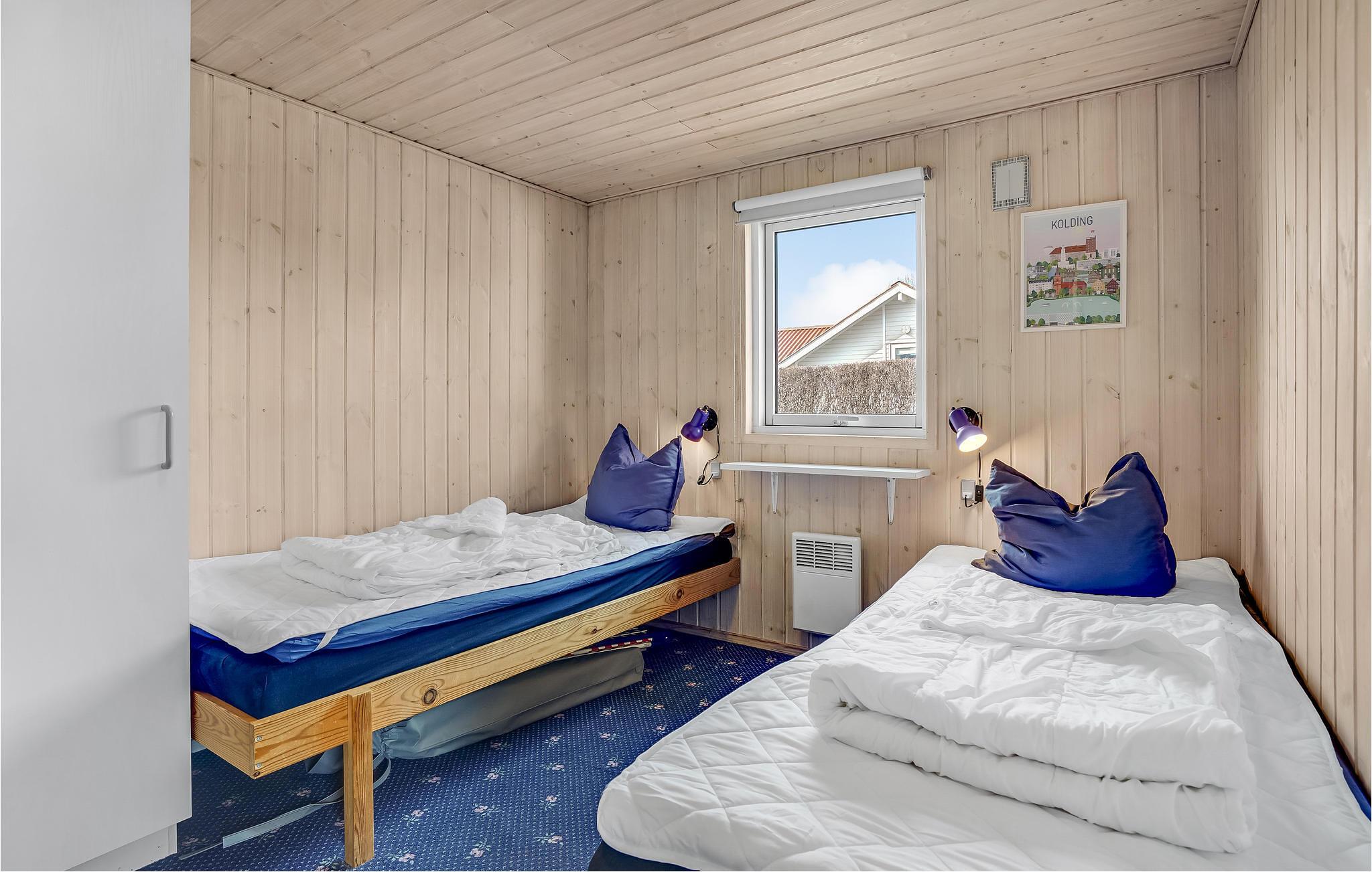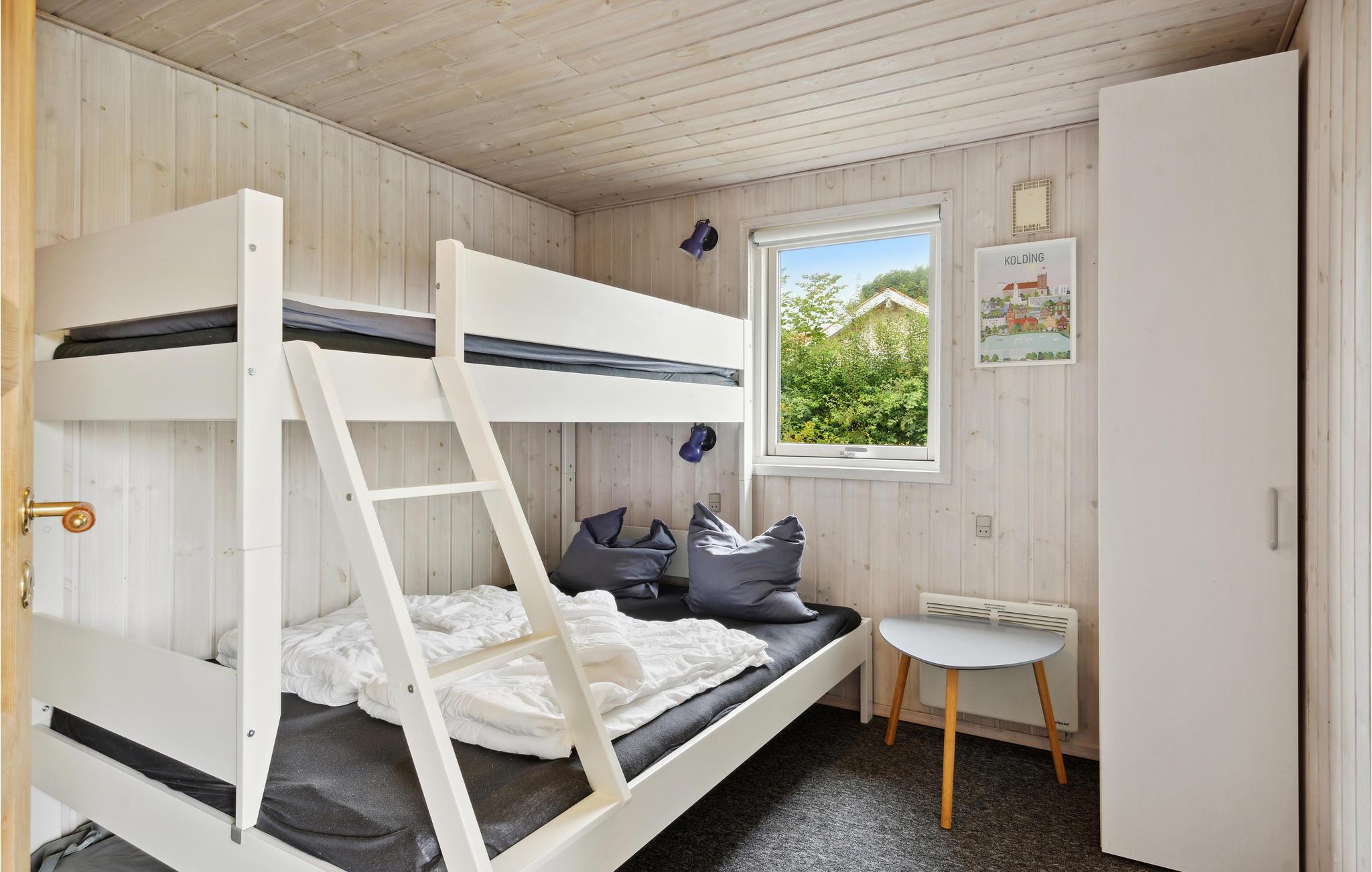 I Hejlsmindes sommerhus område ligger dette pæne og velholdte sommerhus på en lille rolig vej. På husets store og delvis overdækkede terrasse kan I nyde solen, spise dagens måltider og kigge på den skønne udsigt over skov og vand.. Huset er godt indrettet med komfortable senge og med god plads til alle i familien. Huset er velegnet til ferie både sommer og vinter da det er udstyret med brændeovn og varmepumpe. Hejlsminde ligger ved Lillebælt i et naturskønt område nær skov, strand, seværdigheder og naturattraktioner. Byen har en hyggelig bådehavn, og flere steder er der smuk udsigt til Fyn. Ikke langt fra Hejlsminde ligger det smukke naturområde Skamlingsbanken. Købstaden Christiansfeld er kendt i hele landet for sine honningkager, kakkelovne og spegepølser. I Kolding og omegn er en mangfoldighed af oplevelser – hvad end I vil holde ferie i børnehøjde, aktiv ferie, eller med kunst- og kulturoplevelser. Her kan nævnes Kunstmuseet Trapholt, Koldinghus, gågaderne med det hyggelige cafémiljø, eller Kolding Storcenter, der med sine mange butikker under et tag frister til indkøb af alt det I ellers ikke har tid til. Der er også mulighed for en tur i legeparken med mange gratis glæder. Både Legoland og Givskud løvepark ligger i overkommelig køreafstand.