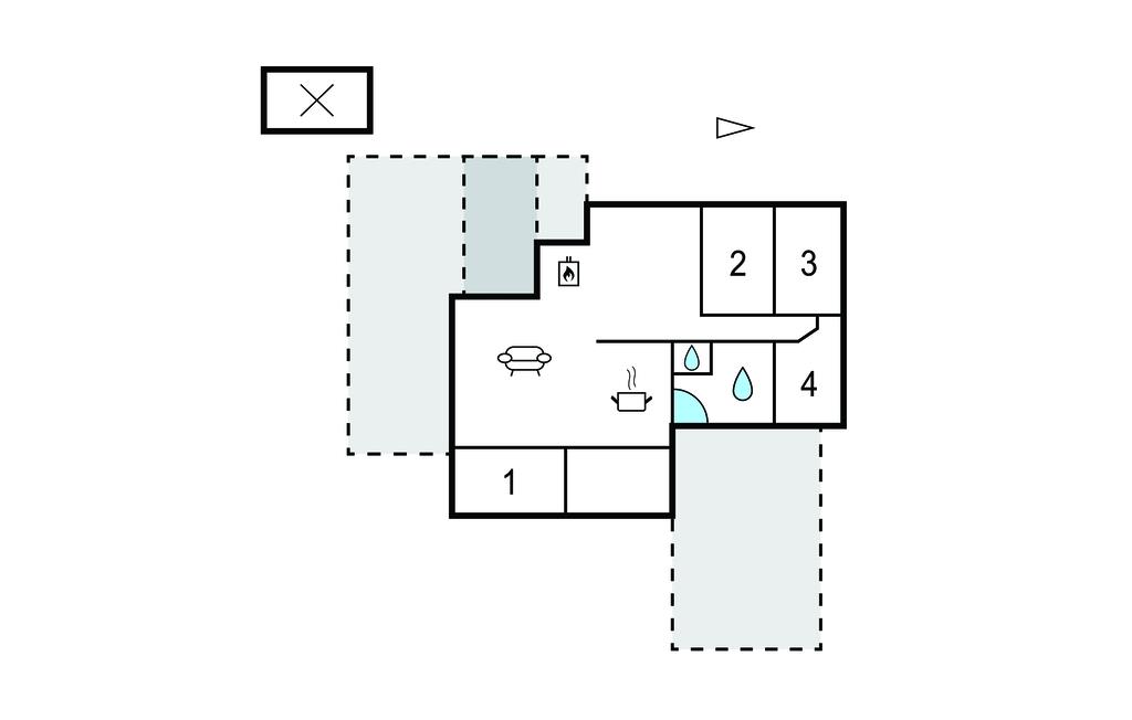Det åbent indrettede opholdsrum byder jer velkommen med lyse trælofter, store vinduespartier og en venlig indretning. Tag plads i de komfortable lænestole, tænd op i brændeovnen på køligere aftener, og nyd rolige stunder med udsigt til haven. Benyt det rummelige spisebord til fælles måltider eller hyggelige spilleaftener. Tilbered jeres måltider i køkkenet, som ligger i direkte forbindelse med opholdsrummet.