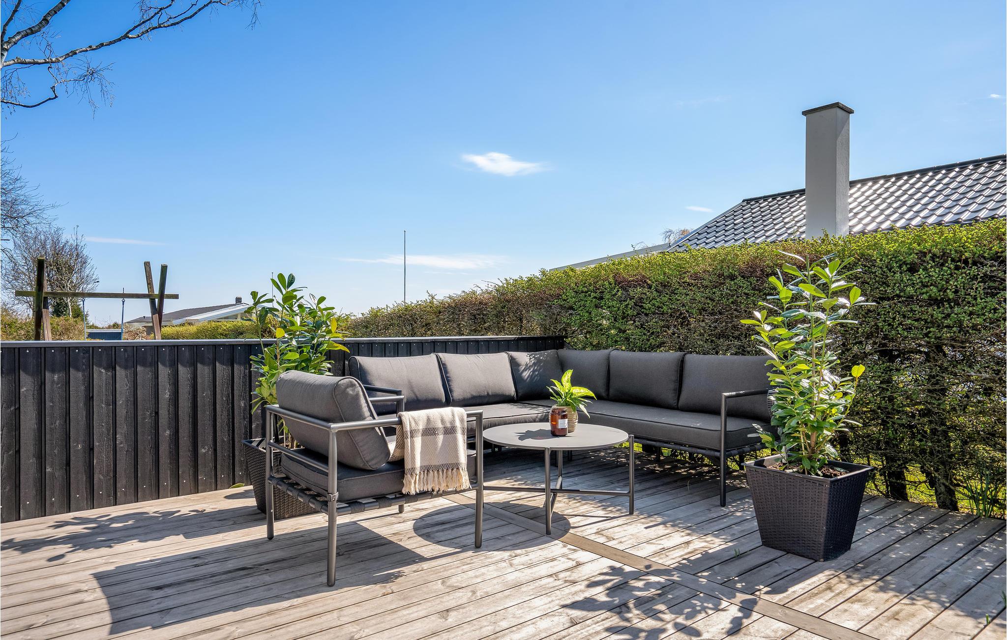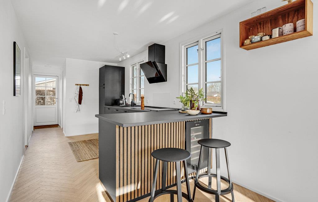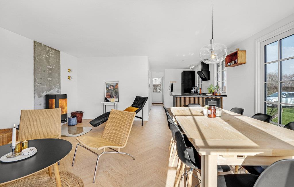 Kun 200m fra stranden ligger dette skønne sommerhus på en dejlig uforstyrret havegrund for enden af en blind vej. Huset fremstår flot og er indrettet med en rummelig stue. Stuen har brændeovn og er forbundet med køkkenet, hvor I kan sidde på barstolen ved køkkenbordet og hygge, mens der bliver lavet mad.