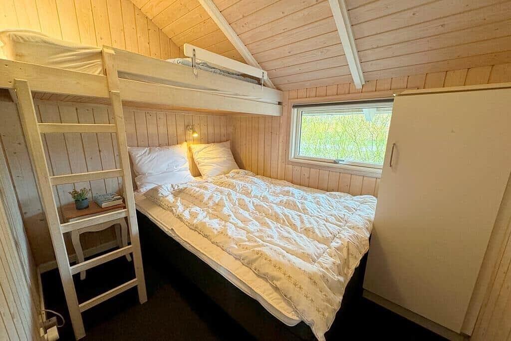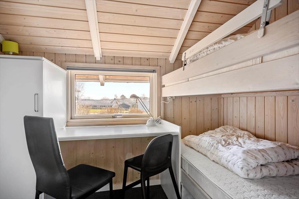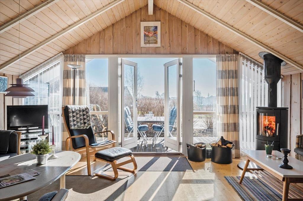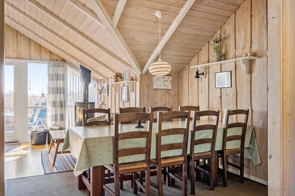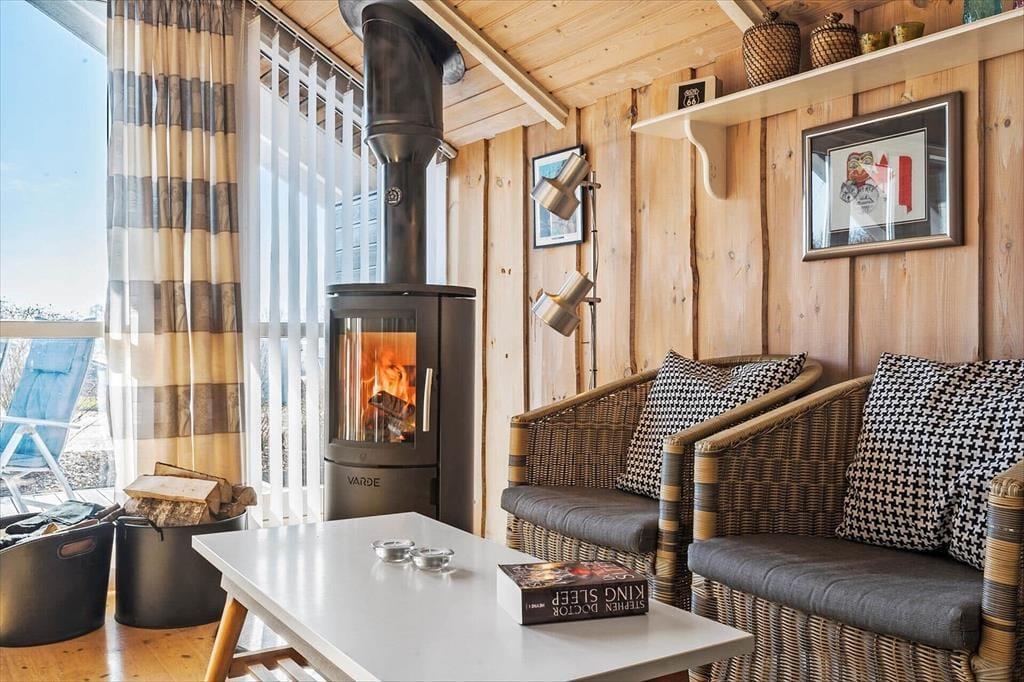 Sommerhuset emmer af lys og luftighed, når du træder indenfor. I stuen strømmer dagslyset ind gennem de store vinduespartier og skaber et varmt og indbydende rum, hvor loft til kip giver en dejlig rummelighed. Her kan du finde dig godt til rette i sofaen med udsigt til haven, mens du nyder stilheden og samværet med dem, du holder af. Køkkenet ligger i åben forbindelse med stuen og danner en naturlig ramme om feriens måltider og hyggelige stunder ved spisebordet. Når dagen går på hæld, kan du trække dig tilbage til de rolige værelser, der alle er indrettet med fokus på komfort og afslapning.