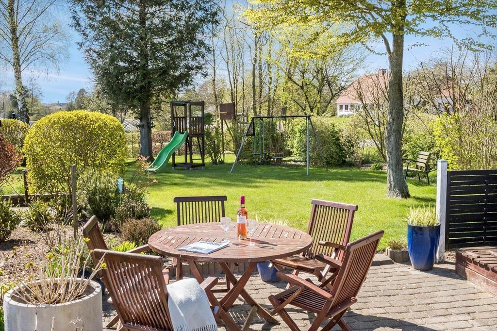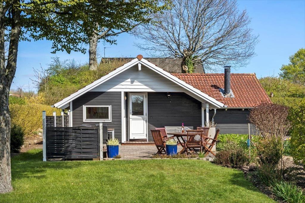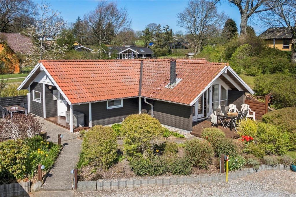 Det fredelige udemiljø indbyder til ren afslapning og nærvær. Sommerhusets have er velplejet og byder på flere små hyggekroge, hvor du kan slå dig ned med en bog eller nyde en kop kaffe i solen. På terrassen – både den overdækkede og den åbne – er der rig mulighed for at samles til måltider i det fri eller forlænge de lune sommeraftener under åben himmel. Når solen står højt, er græsplænen ideel til leg og spil, mens fuglene kvidrer i trækronerne omkring dig. Her kan du fornemme den helt særlige ro, som kendetegner Hejlsminde-området.