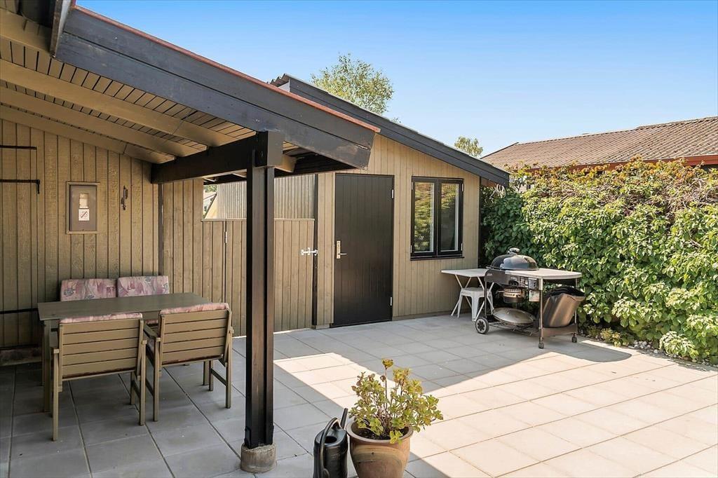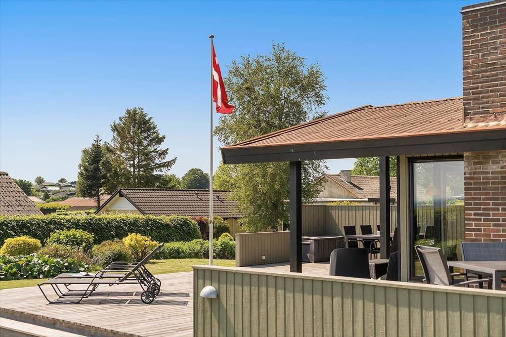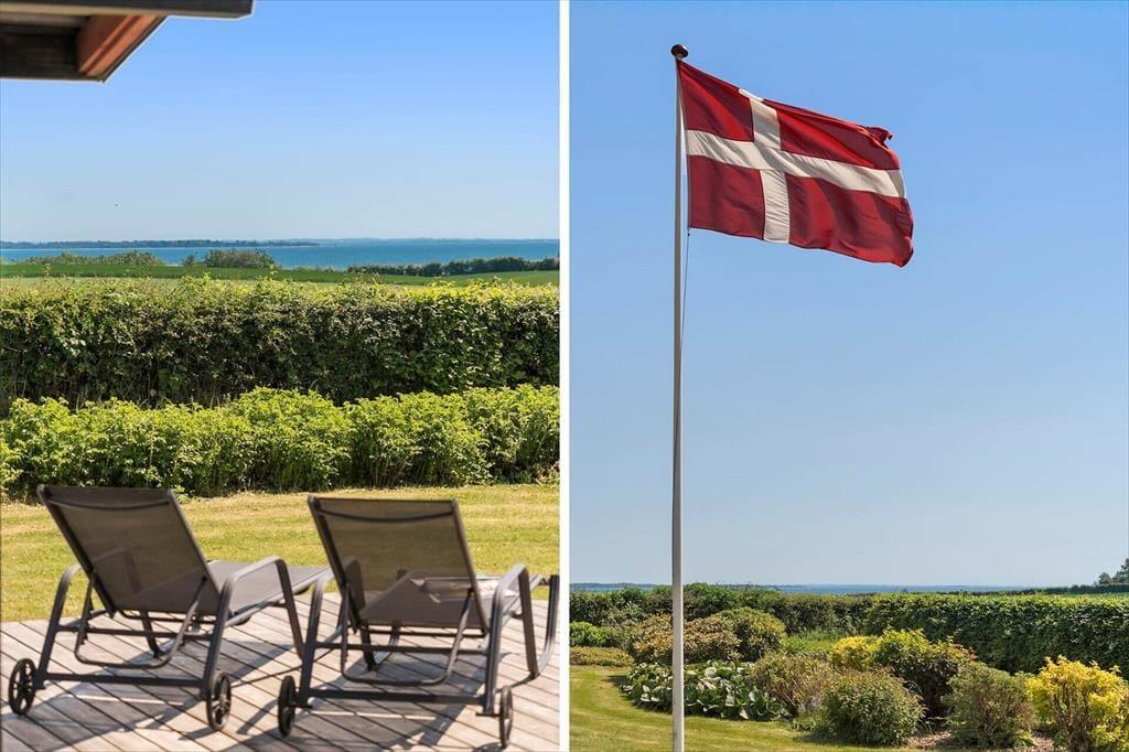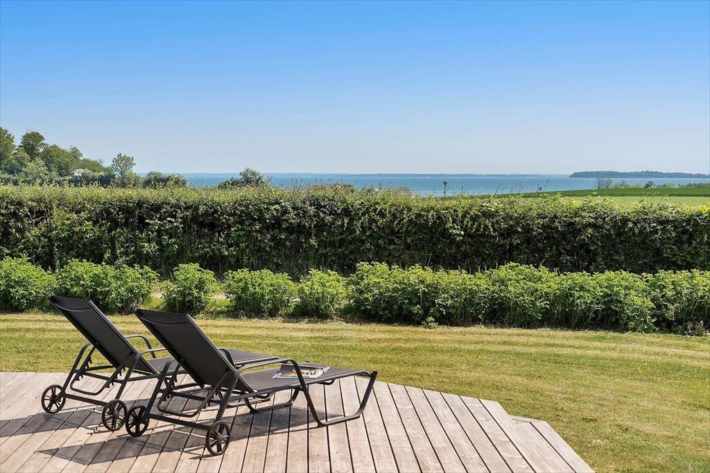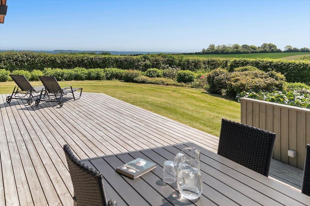 Sommerhuset ligger på en stor grund, der grænser op til åbne marker, så her er fred og ro til at nyde naturen. Fra terrassen kan du lade blikket vandre ud over landskabet og nyde den flotte udsigt til vandet. Den delvist overdækkede terrasse giver dig mulighed for at nyde de lange sommeraftener uanset vejret, og havemøblerne indbyder til afslapning med en kop kaffe eller et glas vin. Grunden giver masser af plads til leg og aktiviteter, så både børn og voksne kan nyde tiden udendørs. Måske har du lyst til at starte dagen med en frisk morgendukkert i Hejlsminde Bugt, der ligger inden for kort rækkevidde.