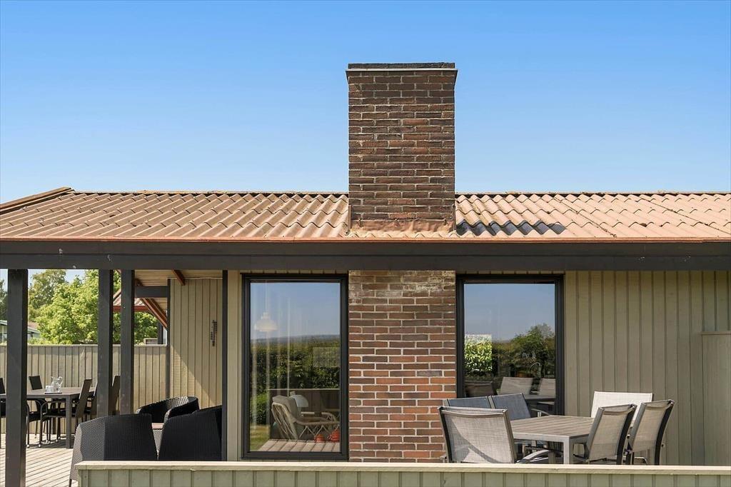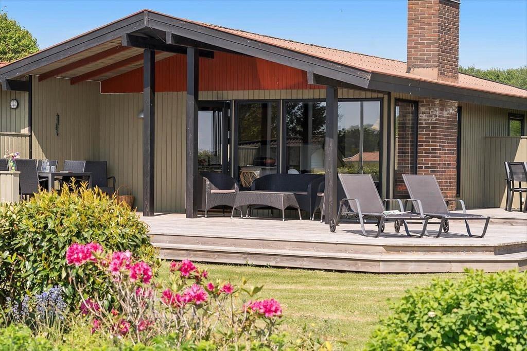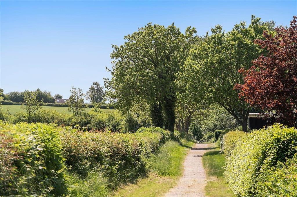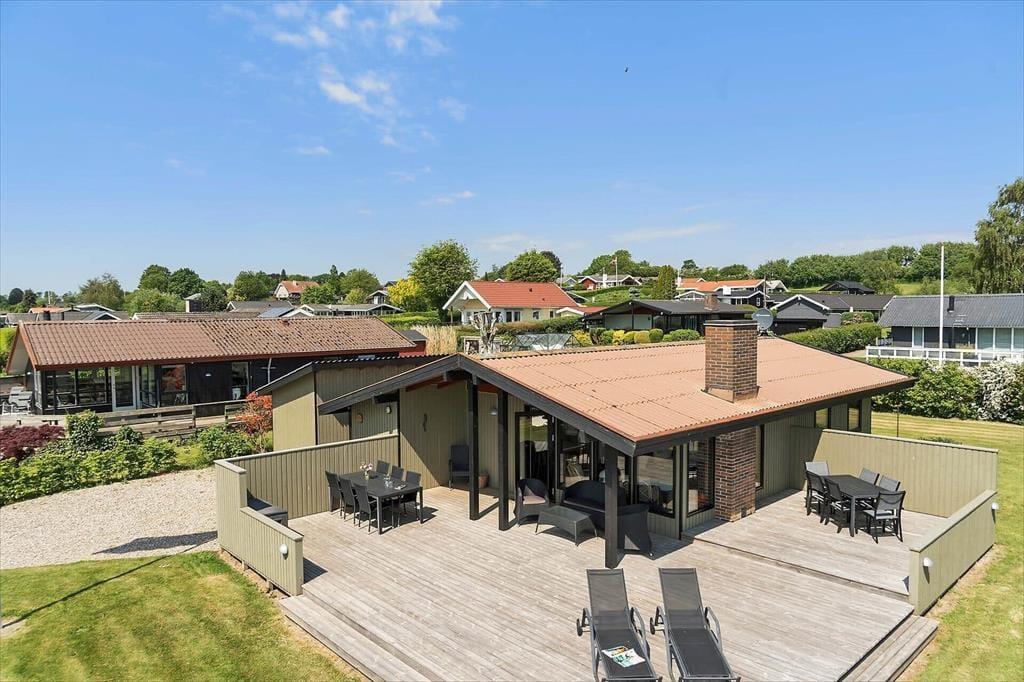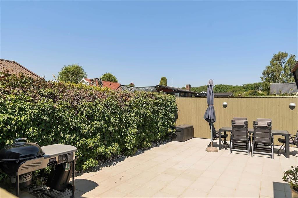 Sommerhuset ligger på en stor grund, der grænser op til åbne marker, så her er fred og ro til at nyde naturen. Fra terrassen kan du lade blikket vandre ud over landskabet og nyde den flotte udsigt til vandet. Den delvist overdækkede terrasse giver dig mulighed for at nyde de lange sommeraftener uanset vejret, og havemøblerne indbyder til afslapning med en kop kaffe eller et glas vin. Grunden giver masser af plads til leg og aktiviteter, så både børn og voksne kan nyde tiden udendørs. Måske har du lyst til at starte dagen med en frisk morgendukkert i Hejlsminde Bugt, der ligger inden for kort rækkevidde.