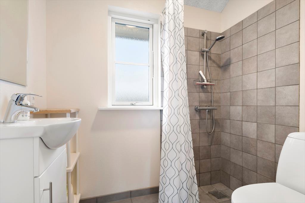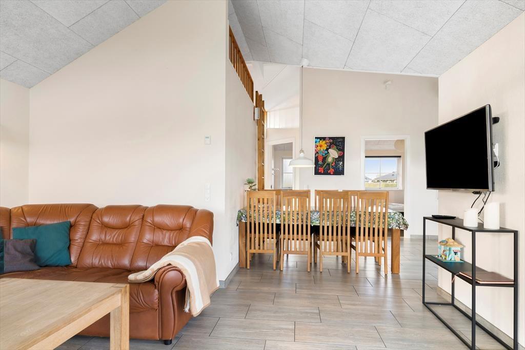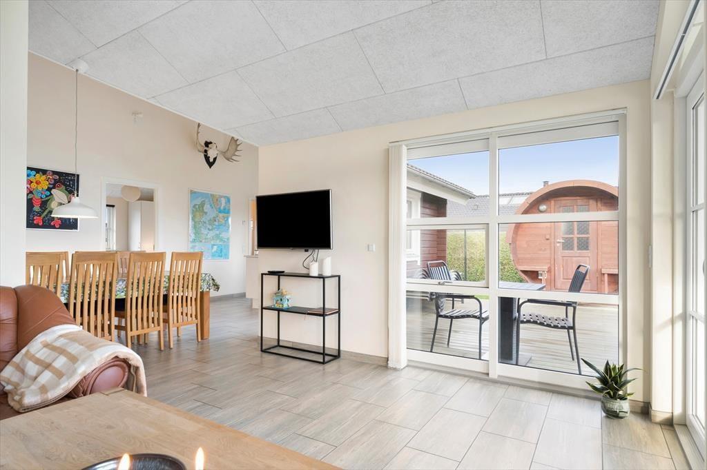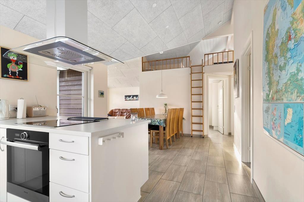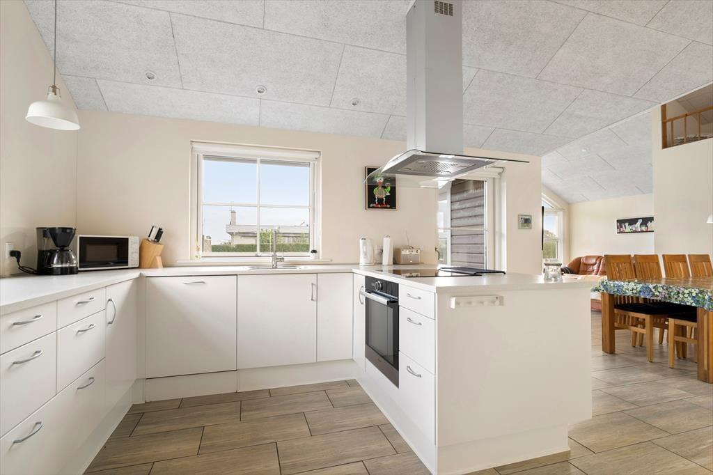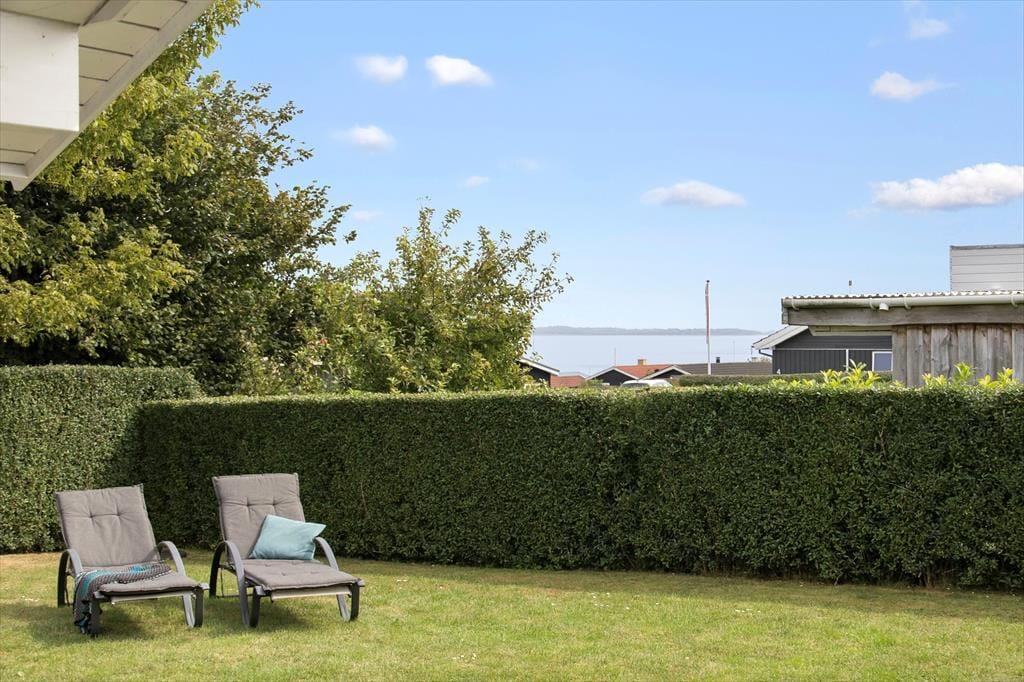 Når du træder indenfor i sommerhuset, mødes du af en lys og indbydende atmosfære, der emmer af hygge og komfort. Indretningen er gennemtænkt med funktionelle løsninger, og det åbne køkken-alrum skaber den perfekte ramme om fælles måltider og gode samtaler. Fine detaljer og det store opholdsrum, hvor stuen flyder naturligt sammen med køkkenet, gør det nemt at føle sig hjemme. Herfra kan du lade blikket vandre ud gennem de store vinduer mod den grønne have og få en smagsprøve på udsigten til vandet. De rummelige soveværelser indbyder til god nattesøvn, og badeværelset er holdt i lyse nuancer, der understøtter husets harmoniske stemning.