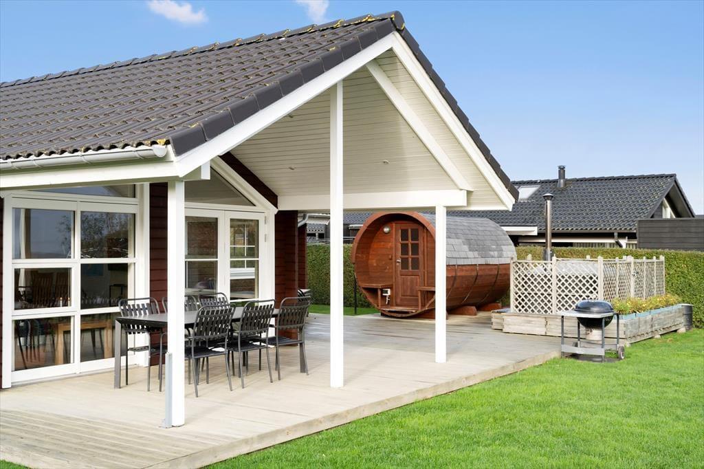 Udendørslivet i dette sommerhus byder på unikke muligheder for velvære og afslapning. Hvad enten du starter dagen med en tur i den lune sauna eller lader dig synke ned i det varme vildmarksbad under åben himmel, bliver det en ferie fyldt med uforglemmelige stunder. Terrassen er udstyret med komfortable havemøbler og grill, hvilket gør det nemt at nyde både solrige dage og hyggelige aftener sammen. Fiskerensepladsen giver fiskere i familien mulighed for at klargøre dagens fangst, som senere kan nydes i godt selskab ved havebordet. Haven er hyggeligt indrettet med flere lækroge, hvor du kan slå dig ned med en bog eller nyde en stille stund.