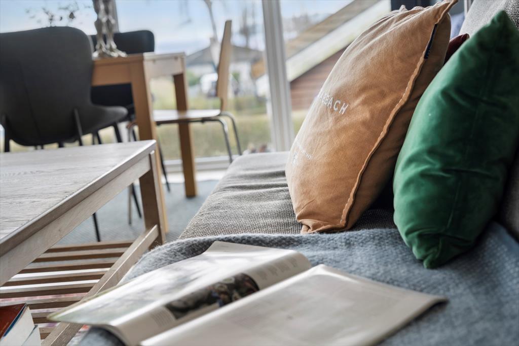 Allerede når du træder ind i sommerhuset, mærker du den lette og luftige stemning, der præger hele huset. Det lyse interiør, de store vinduespartier og det åbne opholdsrum giver en skøn fornemmelse af frihed og ferie ro, mens det moderne køkken og den hyggelige stue inviterer til fælles, stunder og nærvær. Fra stuen har du fri udsigt til himmel og hav, og du kan følge dagens skiftende lysindfald fra første parket. Det rummelige badeværelse byder på lidt ekstra hverdagsluksus i form af en sauna – perfekt til at varme kroppen op efter en frisk gåtur ved vandet. Huset er indrettet med fokus på både æstetik og funktionalitet, så det bliver nemt at føle sig hjemme fra første øjeblik.